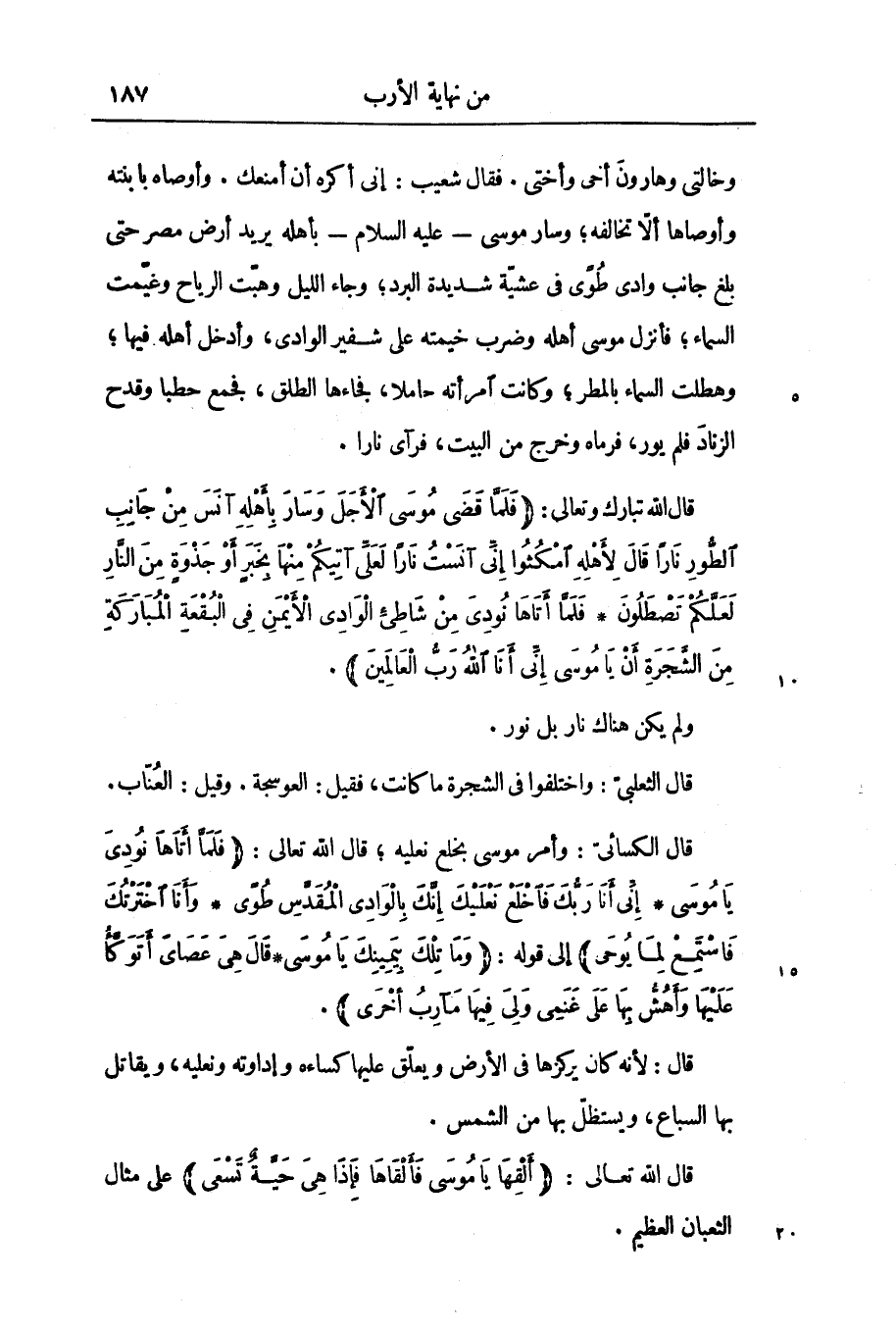 إلى قوله: وَما تِلْكَ بِيَمِينِكَ يا مُوسى * قالَ هِيَ عَصايَ أَتَوَكَّؤُا عَلَيْها وَأَهُشُّ بِها عَلى غَنَمِي وَلِيَ فِيها مَآرِبُ أُخْرى.