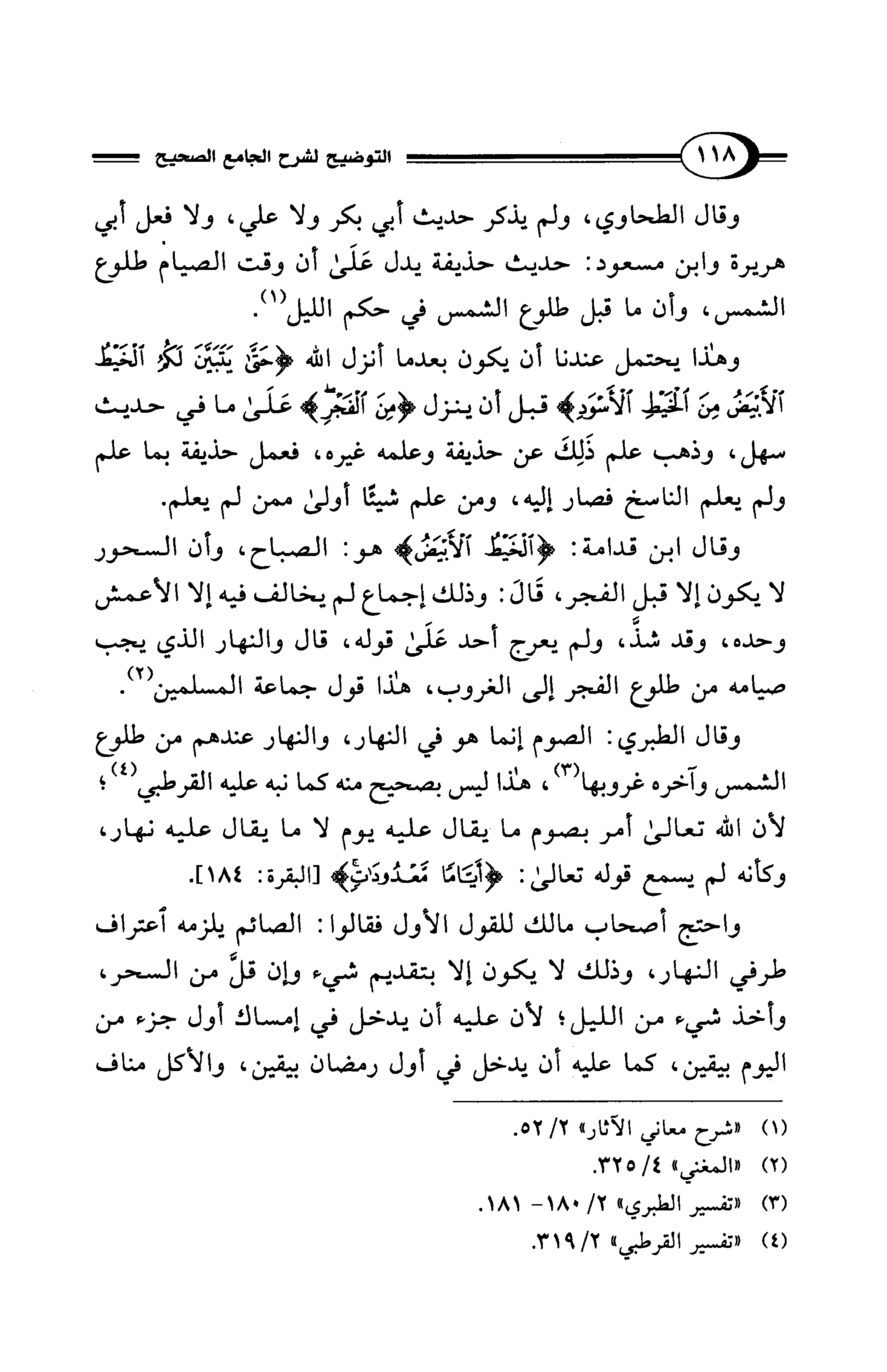 وقال الطحاوي، ولم يذكر حديث أبي بكر ولا علي، ولا فعل أبي هريرة وابن مسعود: حديث حذيفة يدل عَلَى أن وقت الصيام طلوع الشمس، وأن ما قبل طلوع الشمس في حكم الليل (¬1).