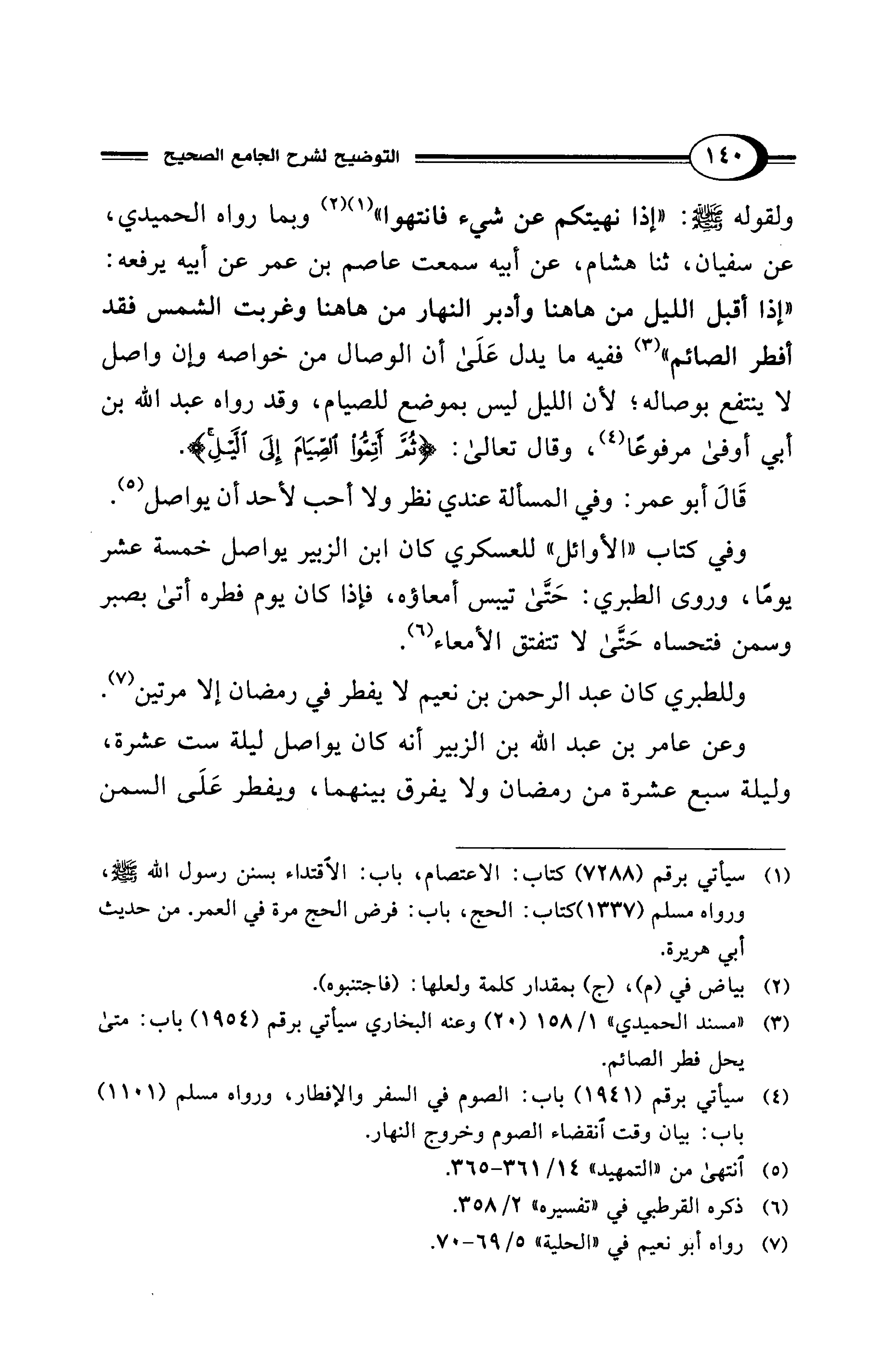 قَالَ أبو عمر: وفي المسألة عندي نظر ولا أحب لأحد أن يواصل (¬5).