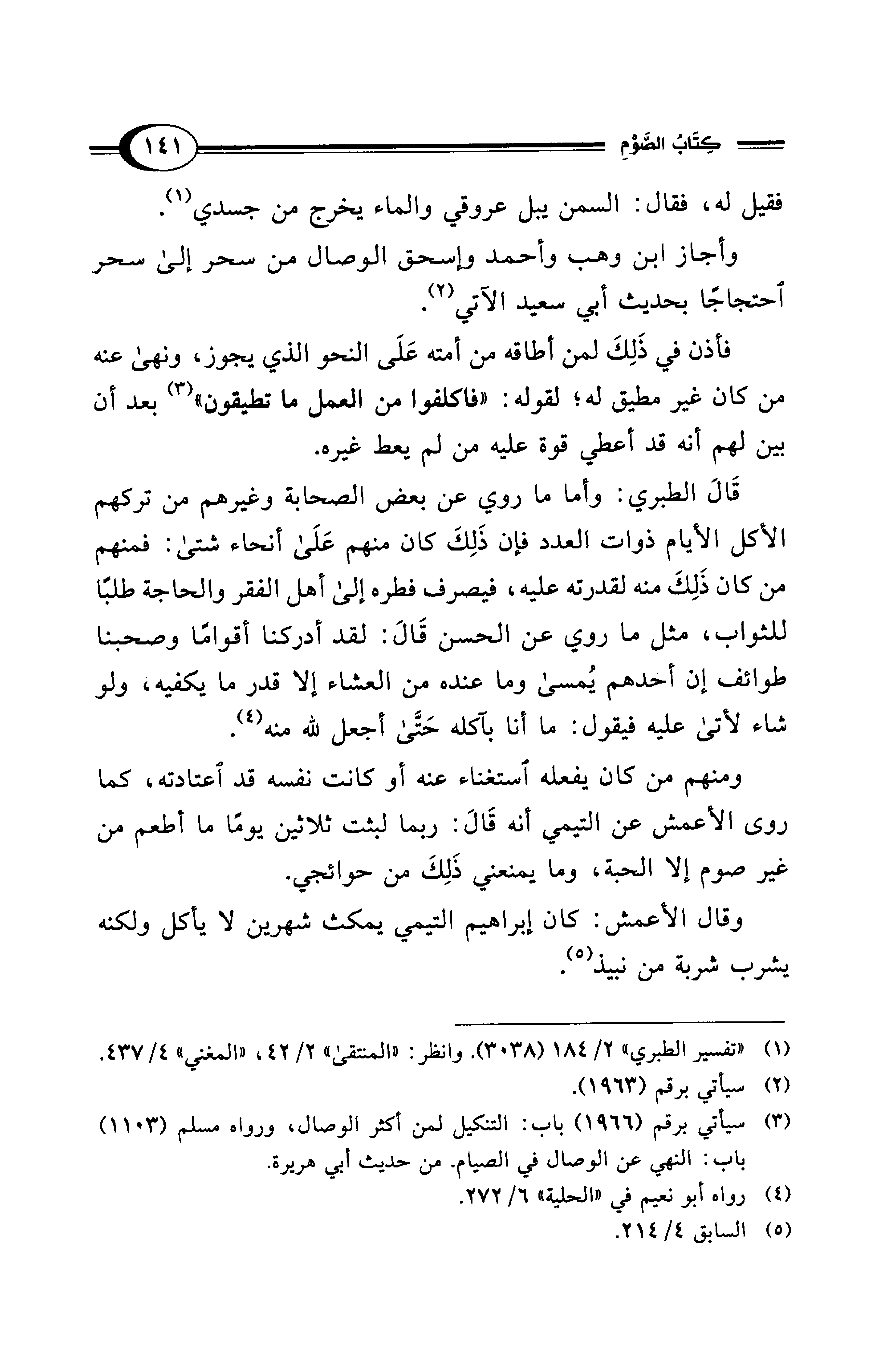 ومنهم من كان يفعله استغناء عنه أو كانت نفسه قد اعتادته، كما روى الأعمش عن التيمي أنه قَالَ: ربما لبثت ثلاثين يومًا ما أطعم من غير صوم إلا الحبة، وما يمنعني ذَلِكَ من حوائجي.