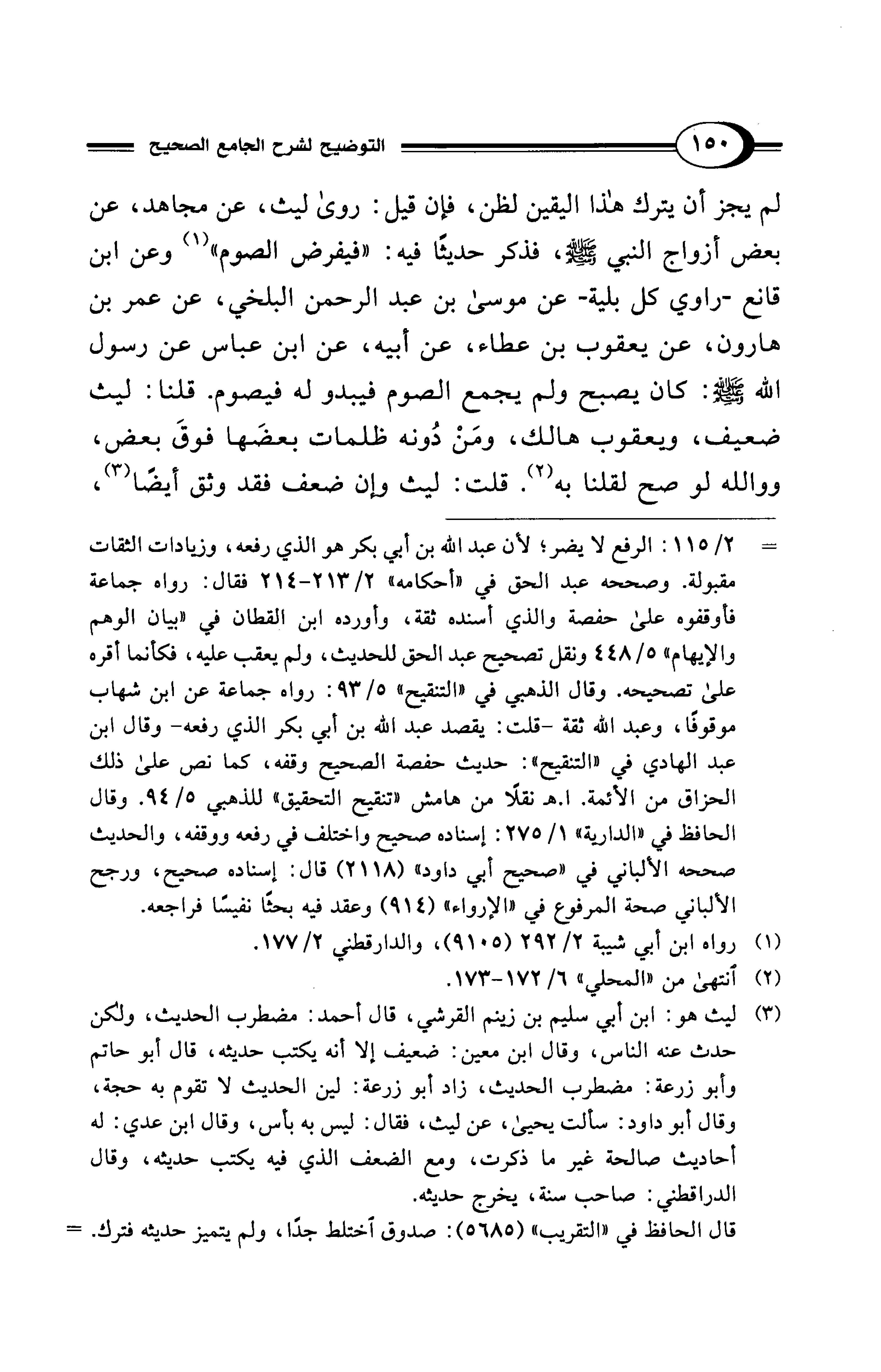 (¬3) ليث هو: ابن أبي سليم بن زينم القرشي، قال أحمد: مضطرب الحديث، ولكن حدث عنه الناس، وقال ابن معين: ضعيف إلا أنه يكتب حديثه، قال أبو حاتم وأبو زرعة: مضطرب الحديث، زاد أبو زرعة: لين الحديث لا تقوم به حجة، وقال أبو داود: سألت يحيى، عن ليث، فقال: ليس به بأس، وقال ابن عدي: له أحاديث صالحة غير ما ذكرت، ومع الضعف الذي فيه يكتب حديثه، وقال الدراقطني: صاحب سنة، يخرج حديثه.