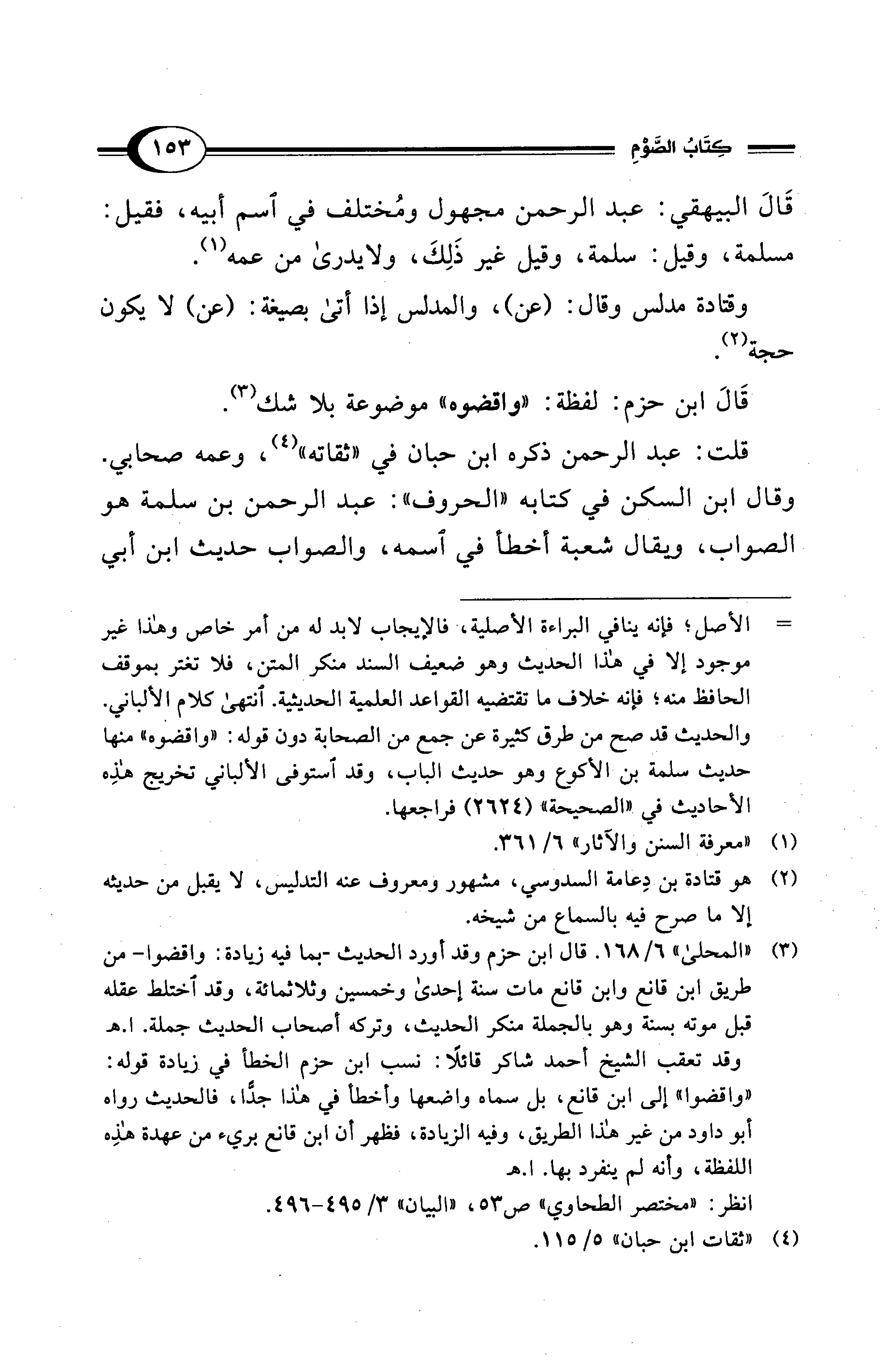 (¬3) "المحلى" 6/ 168. قال ابن حزم وقد أورد الحديث -بما فيه زيادة: واقضوا- من طريق ابن قانع وابن قانع مات سنة إحدى وخمسين وثلاثمائة، وقد اختلط عقله قبل موته بسنة وهو بالجملة منكر الحديث، وتركه أصحاب الحديث جملة. ا. هـ وقد تعقب الشيخ أحمد شاكر قائلًا: نسب ابن حزم الخطأ في زيادة قوله: "واقضوا" إلى ابن قانع، بل سماه واضعها وأخطأ في هذا جدًّا، فالحديث رواه