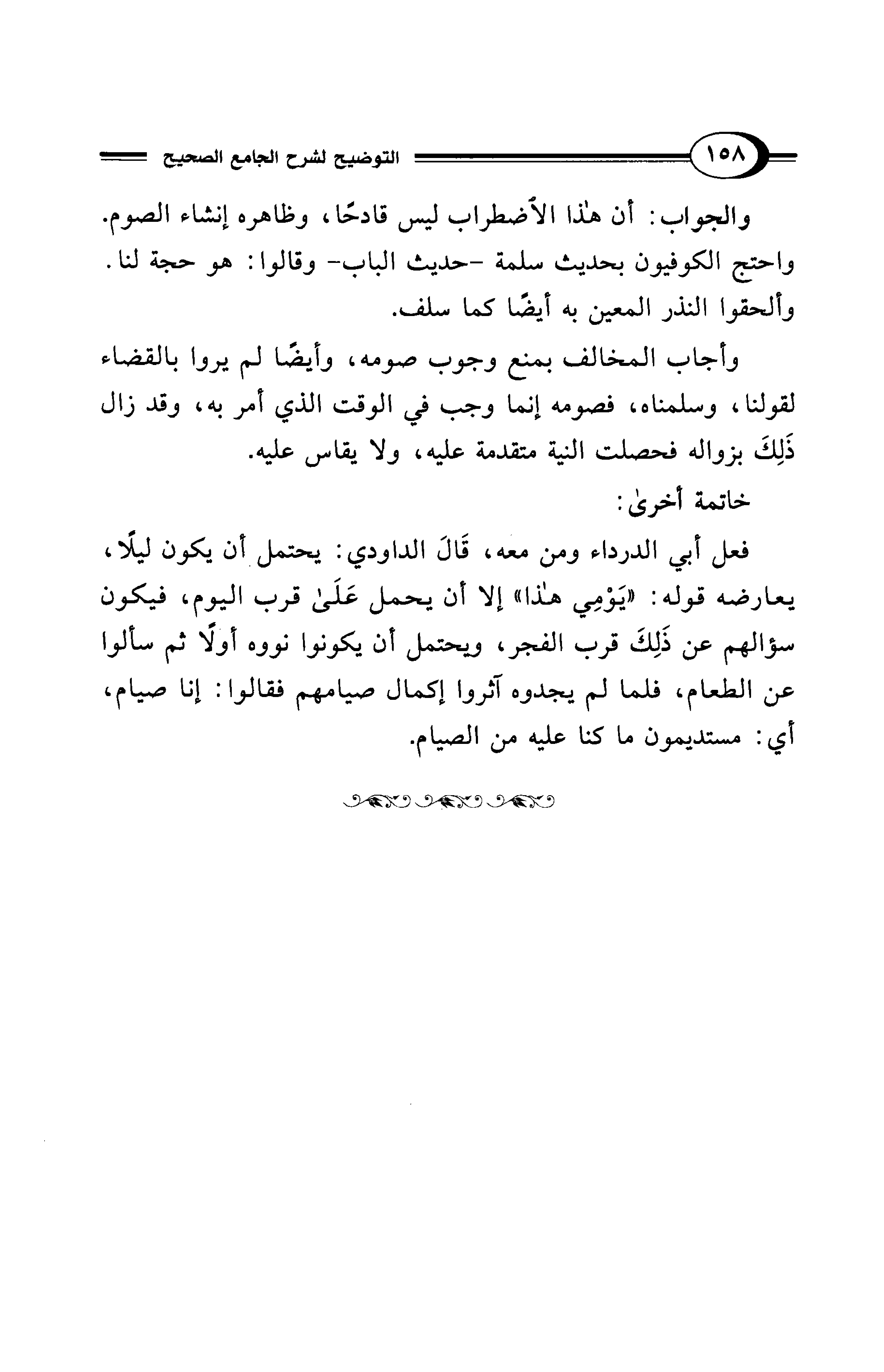 وأجاب المخالف بمنع وجوب صومه، وأيضًا لم يروا بالقضاء لقولنا، وسلمناه، فصومه إنما وجب في الوقت الذي أمر به، وقد زال ذَلِكَ بزواله فحصلت النية متقدمة عليه، ولا يقاس عليه.