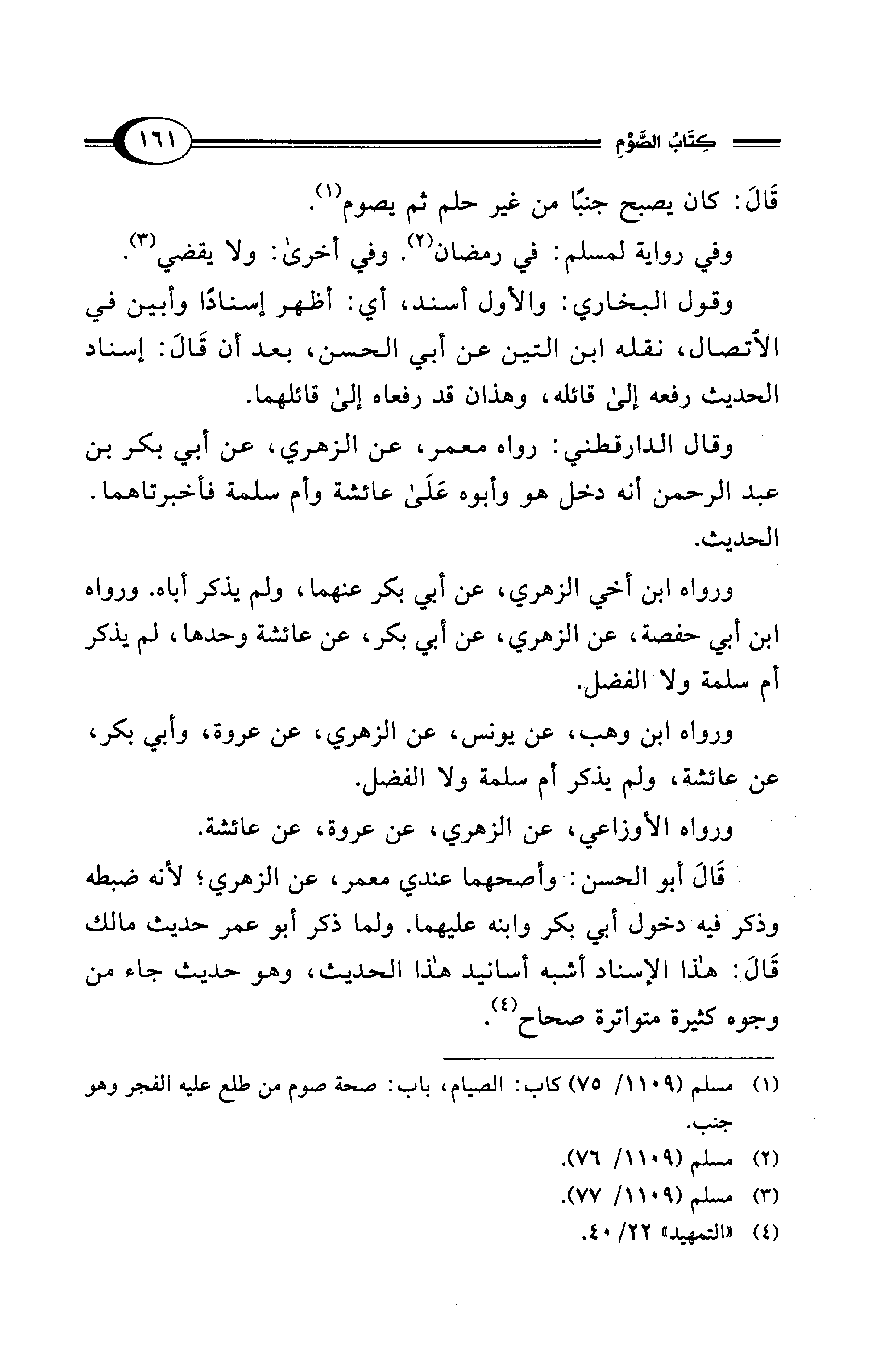 قَالَ: كان يصبح جنبًا من غير حلم ثم يصوم (¬1).