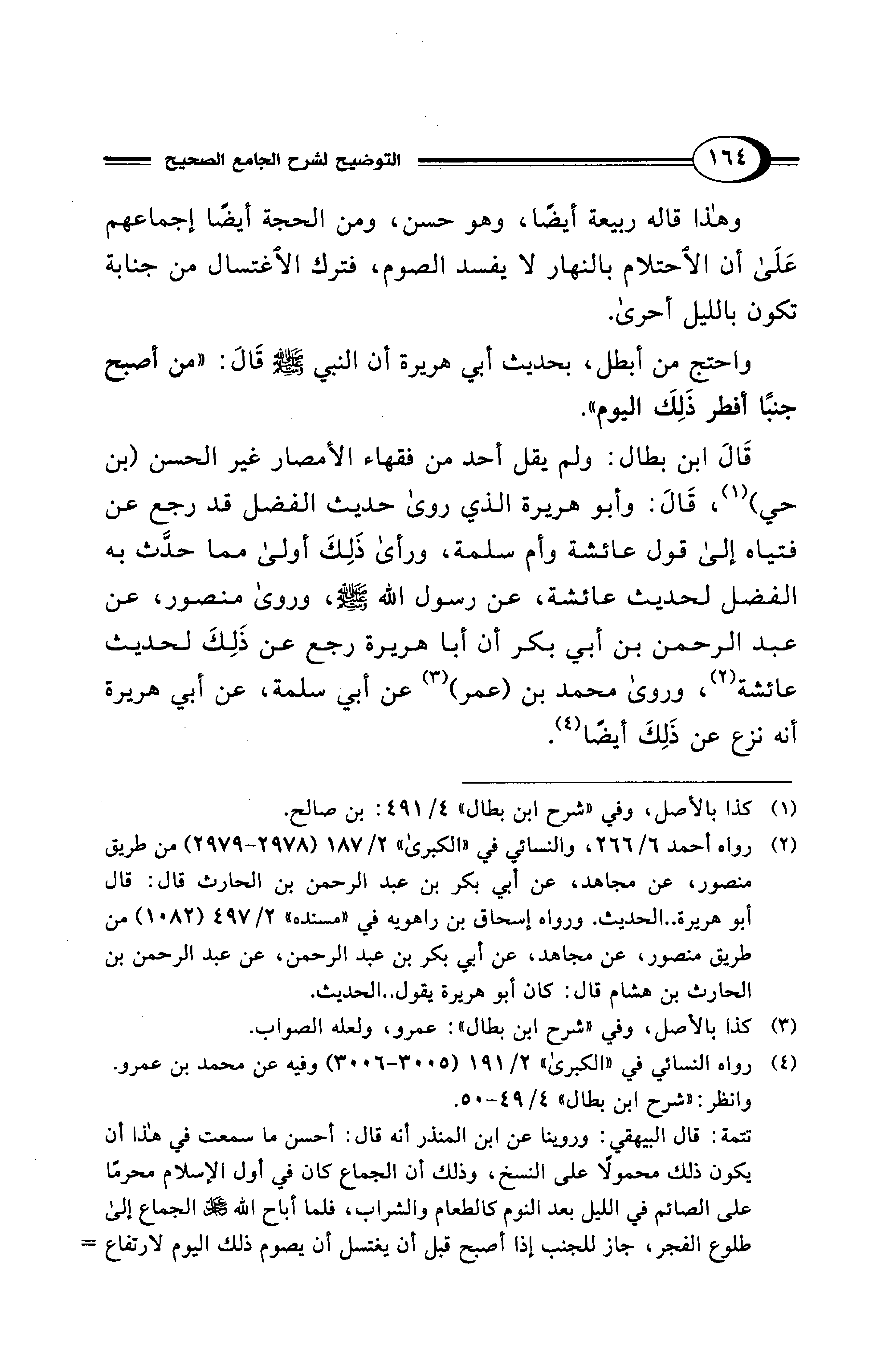 قَالَ ابن بطال: ولم يقل أحد من فقهاء الأمصار غير الحسن (بن حي) (¬1)، قَالَ: وأبو هريرة الذي روى حديث الفضل قد رجع عن فتياه إلى قول عائشة وأم سلمة، ورأى ذَلِكَ أولى مما حدَّث به الفضل لحديث عائشة، عن رسول الله - صلى الله عليه وسلم -، وروى منصور، عن عبد الرحمن بن أبي بكر أن أبا هريرة رجع عن ذَلِكَ لحديث عائشة (¬2)، وروى محمد بن (عمر) (¬3) عن أبي سلمة، عن أبي هريرة أنه نزع عن ذَلِكَ أيضًا (¬4).