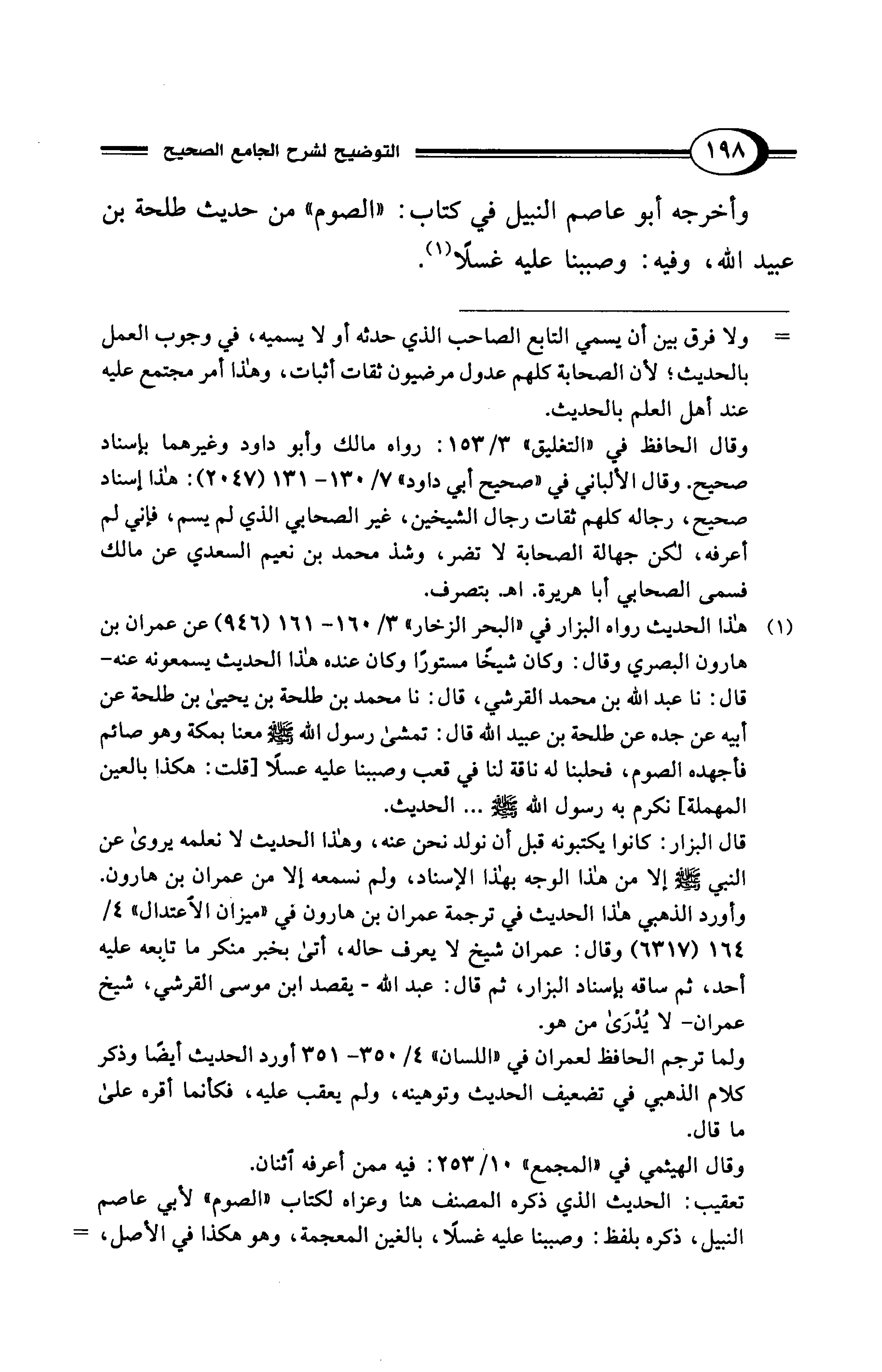 ولما ترجم الحافظ لعمران في "اللسان" 4/ 350 - 351 أورد الحديث أيضًا وذكر كلام الذهبي في تضعيف الحديث وتوهينه، ولم يعقب عليه، فكأنما أقره على ما قال.