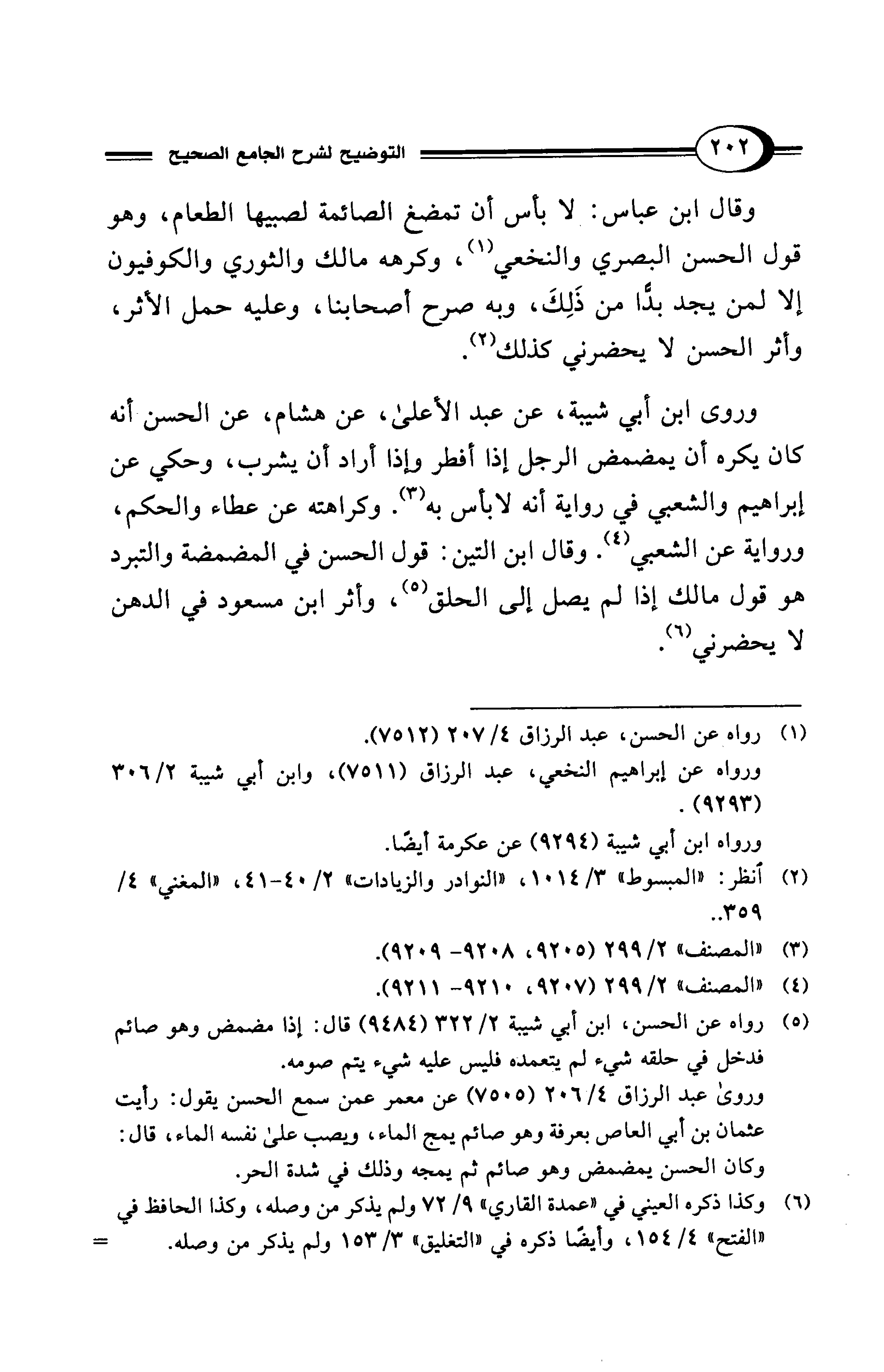 (¬5) رواه عن الحسن، ابن أبي شيبة 2/ 322 (9484) قال: إذا مضمض وهو صائم فدخل في حلقه شيء لم يتعمده فليس عليه شيء يتم صومه.