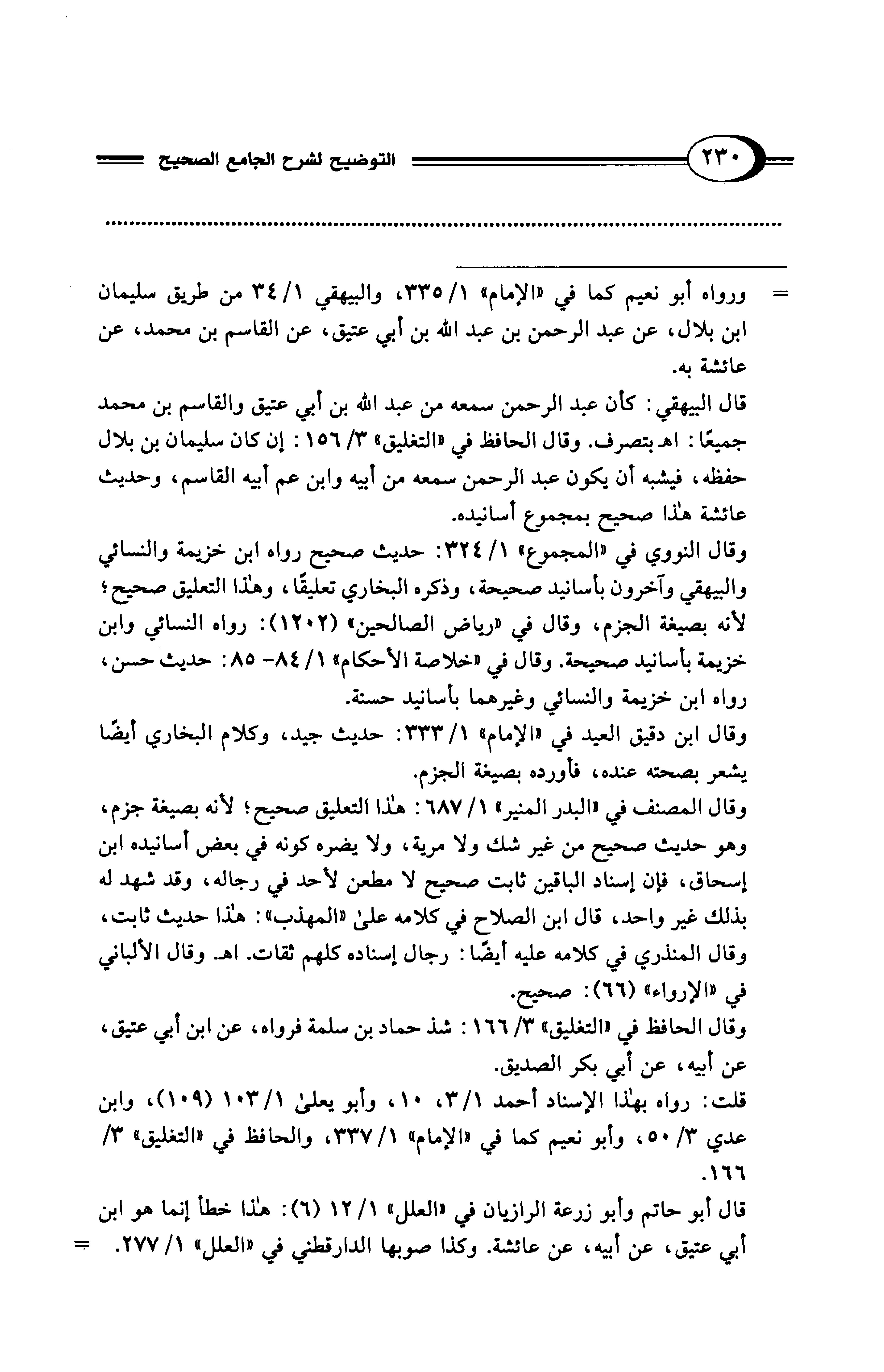 = ورواه أبو نعيم كما في "الإمام" 1/ 335، والبيهقي 1/ 34 من طريق سليمان ابن بلال، عن عبد الرحمن بن عبد الله بن أبي عتيق، عن القاسم بن محمد، عن عائشة به.