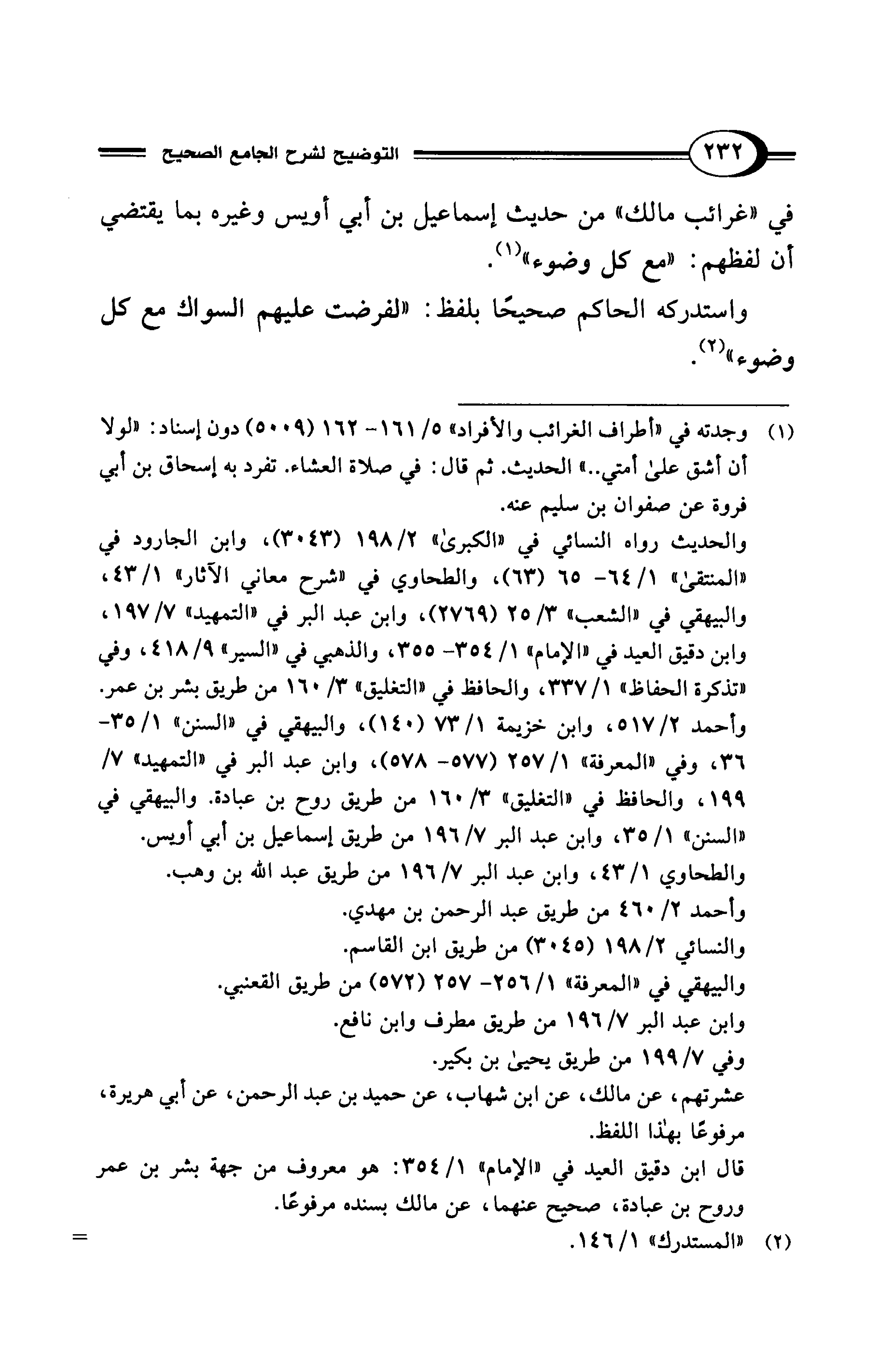 في "غرائب مالك" من حديث إسماعيل بن أبي أويس وغيره بما يقتضي أن لفظهم: "مع كل وضوء" (¬1).