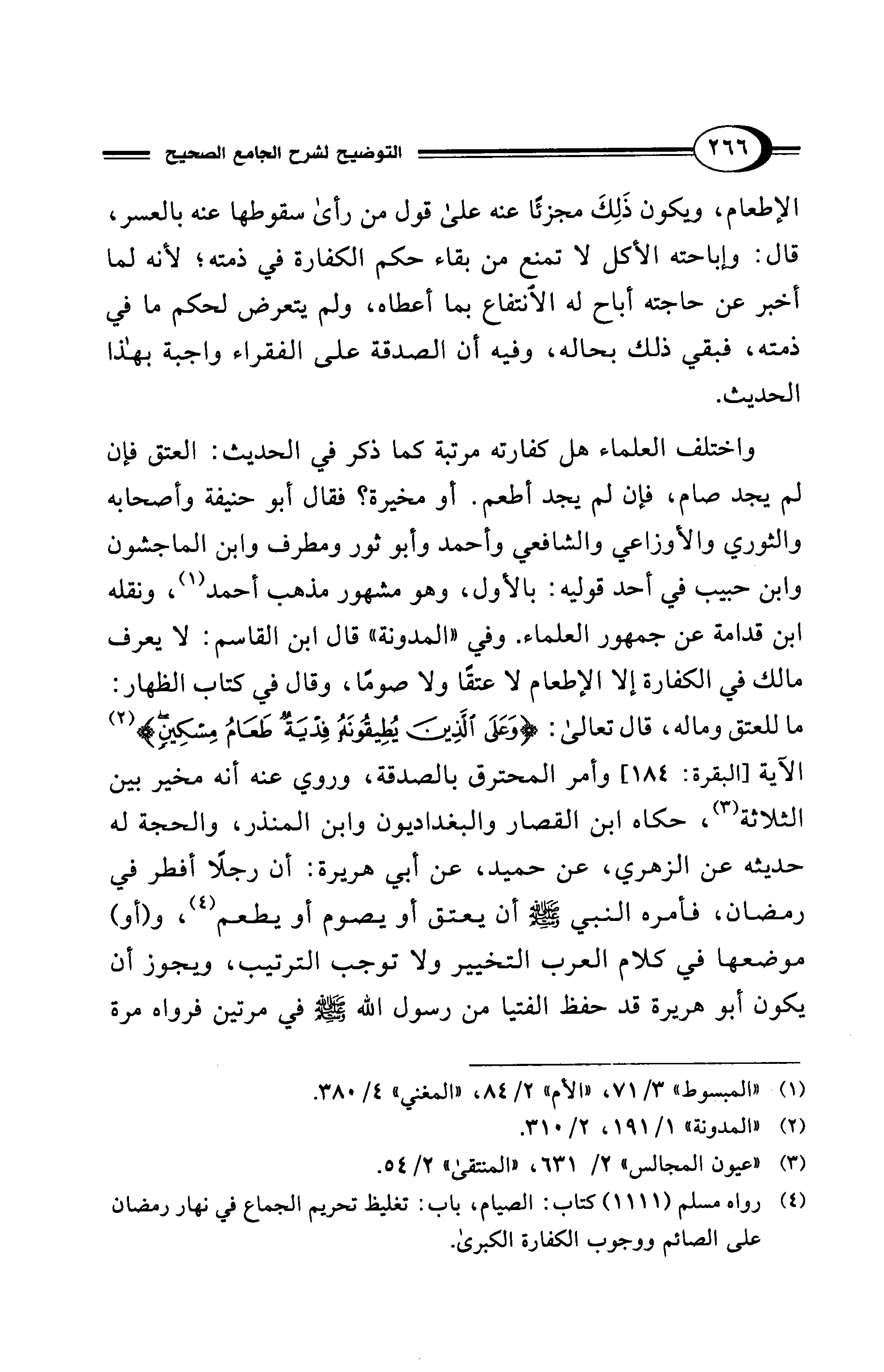 (¬4) رواه مسلم (1111) كتاب: الصيام، باب: تغليظ تحريم الجماع في نهار رمضان على الصائم ووجوب الكفارة الكبرى.