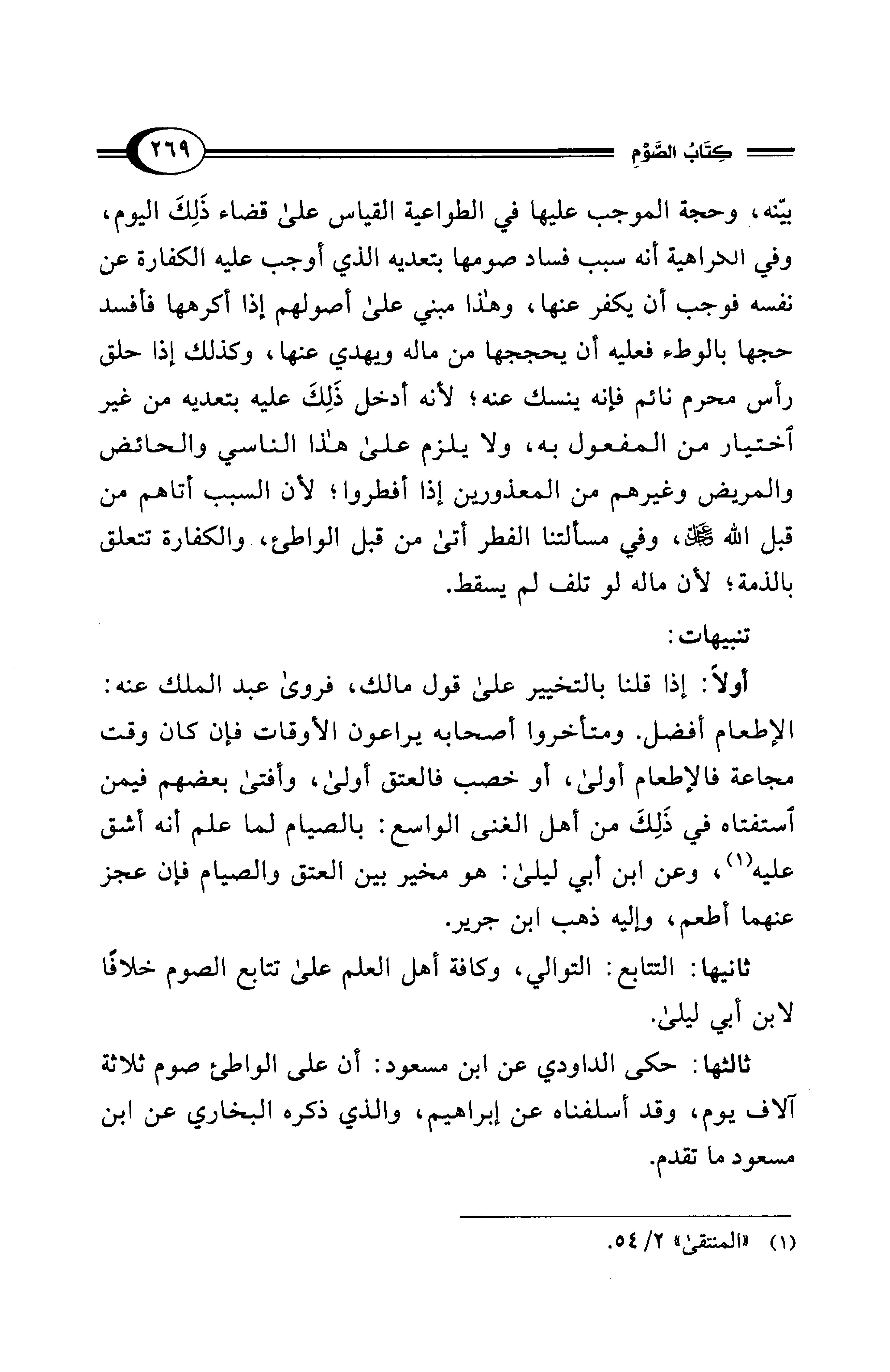 بيّنه، وحجة الموجب عليها في الطواعية القياس على قضاء ذَلِكَ اليوم، وفي الكراهية أنه سبب فساد صومها بتعديه الذي أوجب عليه الكفارة عن نفسه فوجب أن يكفر عنها، وهذا مبني على أصولهم إذا أكرهها فأفسد حجها بالوطء فعليه أن يحججها من ماله ويهدي عنها، وكذلك إذا حلق رأس محرم نائم فإنه ينسك عنه؛ لأنه أدخل ذَلِكَ عليه بتعديه من غير اختيار من المفعول به، ولا يلزم على هذا الناسي والحائض والمريض وغيرهم من المعذورين إذا أفطروا؛ لأن السبب أتاهم من قبل الله -عز وجل-، وفي مسألتنا الفطر أتى من قبل الواطئ، والكفارة تتعلق بالذمة؛ لأن ماله لو تلف لم يسقط.