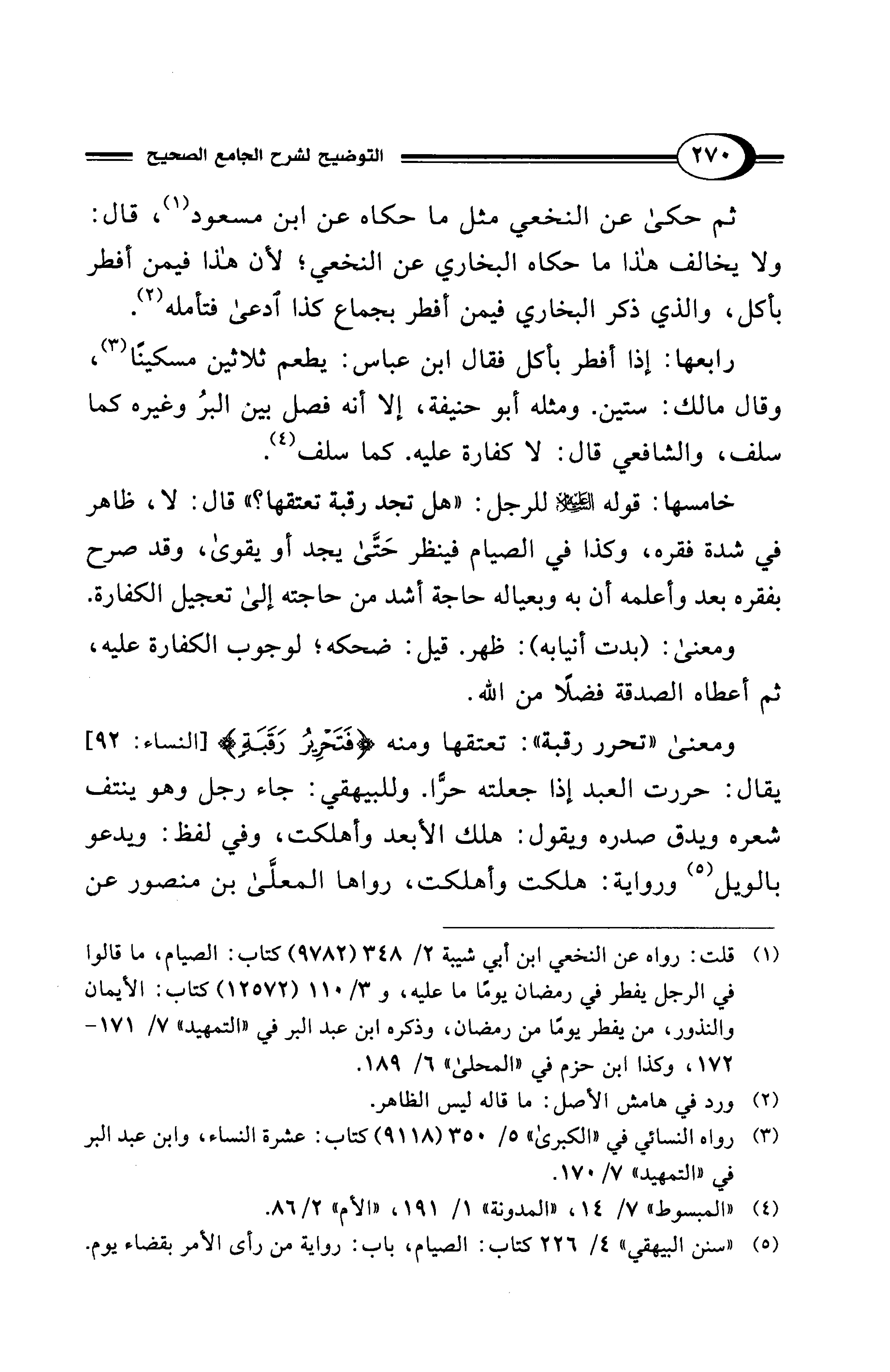 (¬5) "سنن البيهقي" 4/ 226 كتاب: الصيام، باب: رواية من رأى الأمر بقضاء يوم.