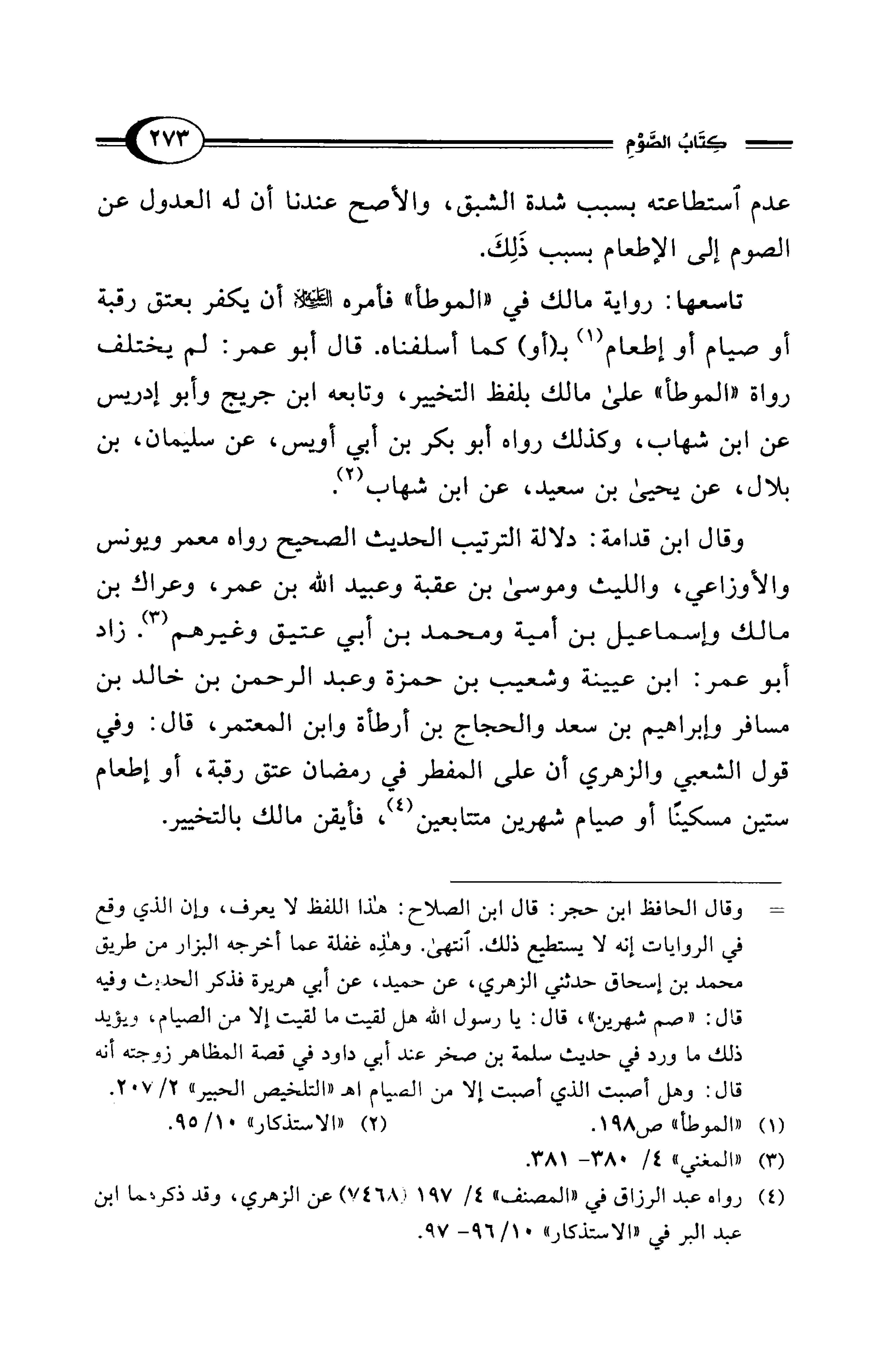 وقال ابن قدامة: دلالة الترتيب الحديث الصحيح رواه معمر ويونس والأوزاعي، والليث وموسى بن عقبة وعبيد الله بن عمر، وعراك بن مالك وإسماعيل بن أمية ومحمد بن أبي عتيق وغيرهم (¬3). زاد أبو عمر: ابن عيينة وشعيب بن حمزة وعبد الرحمن بن خالد بن مسافر وإبراهيم بن سعد والحجاج بن أرطأة وابن المعتمر، قال: وفي قول الشعبي والزهري أن على المفطر في رمضان عتق رقبة، أو إطعام ستين مسكينًا أو صيام شهرين متتابعين (¬4)، فأيقن مالك بالتخيير.