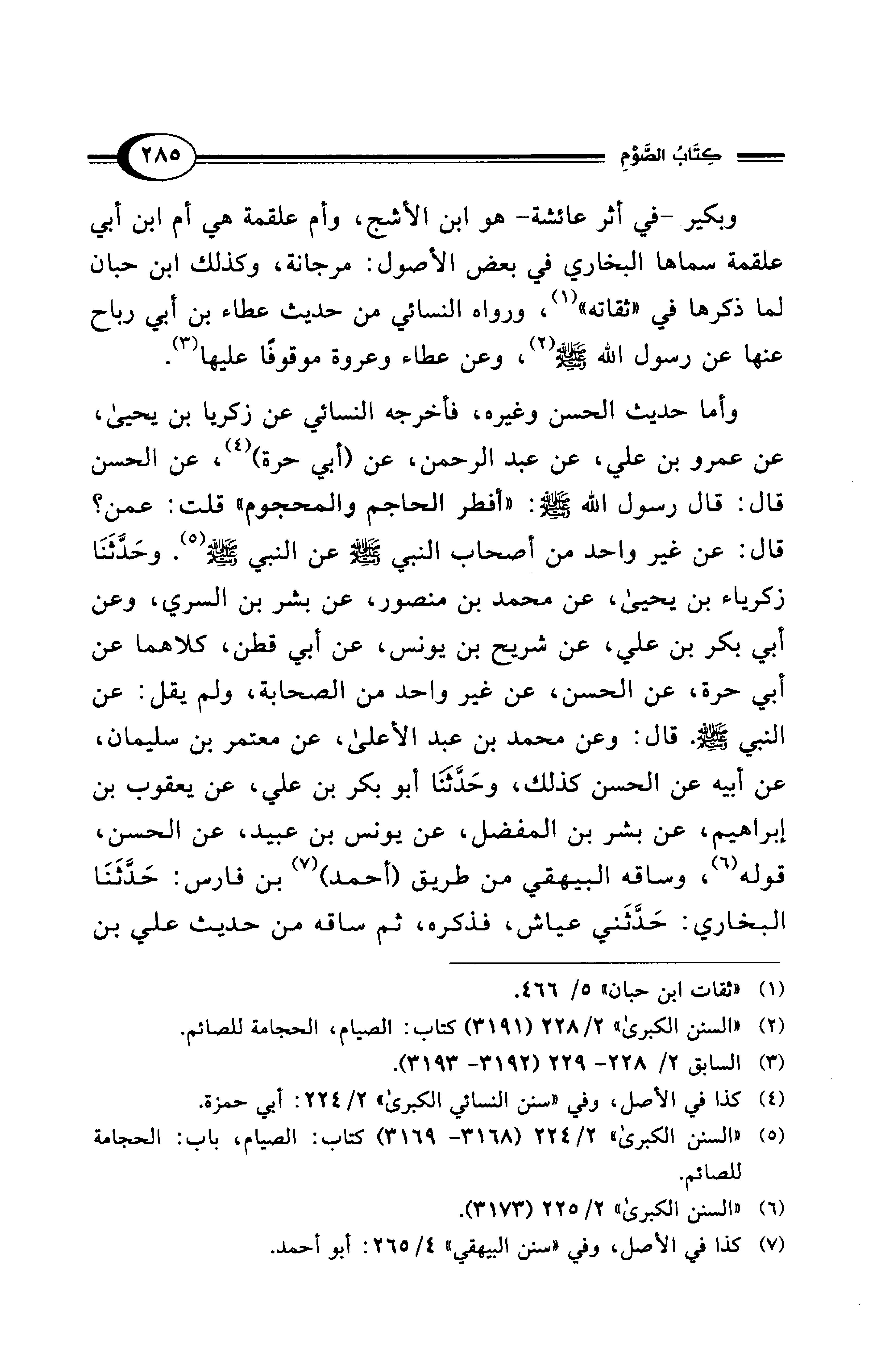 (¬2) "السنن الكبرى" 2/ 228 (3191) كتاب: الصيام، الحجامة للصائم.