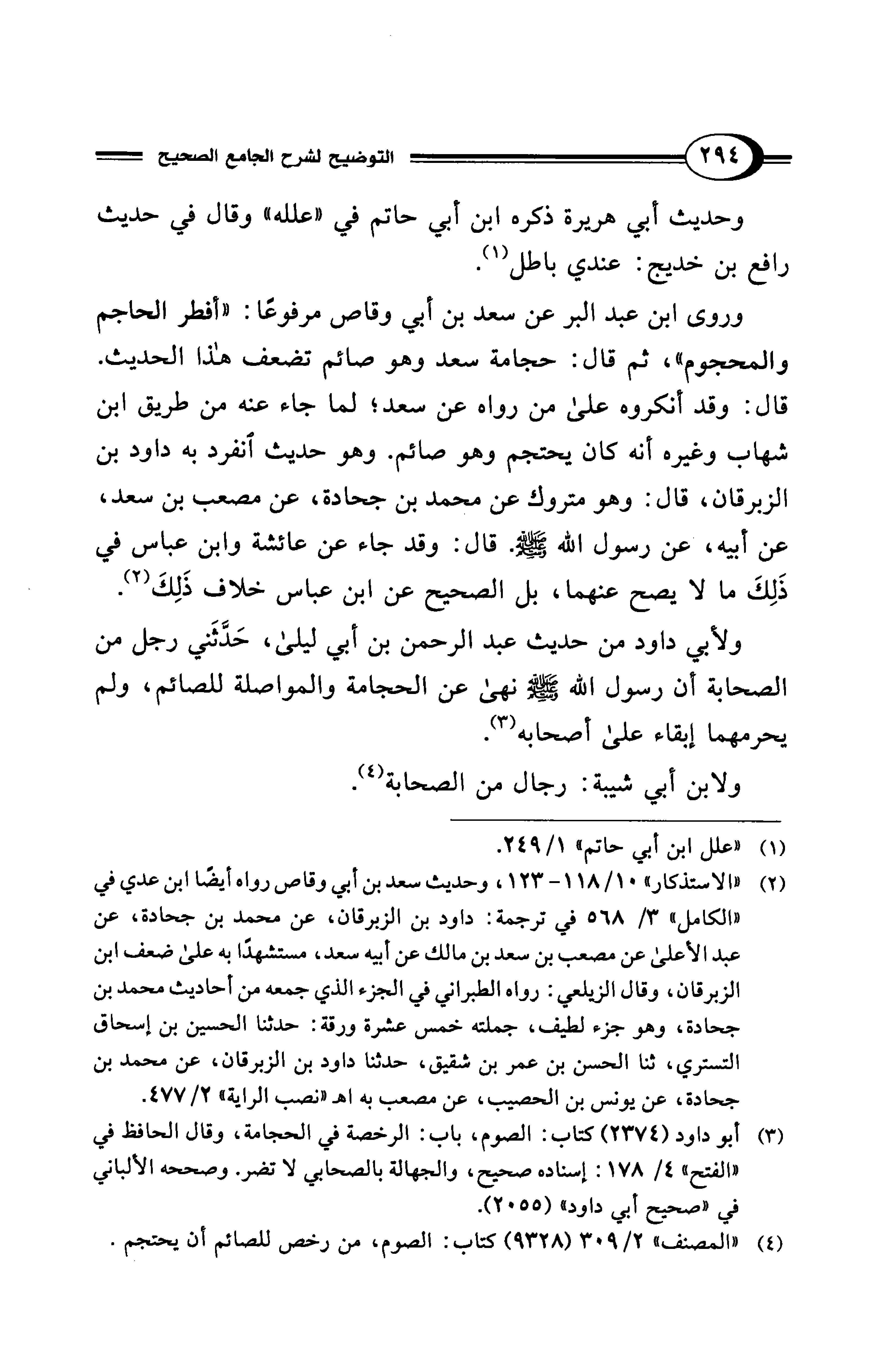 (¬4) "المصنف" 2/ 309 (9328) كتاب: الصوم، من رخص للصائم أن يحتجم.