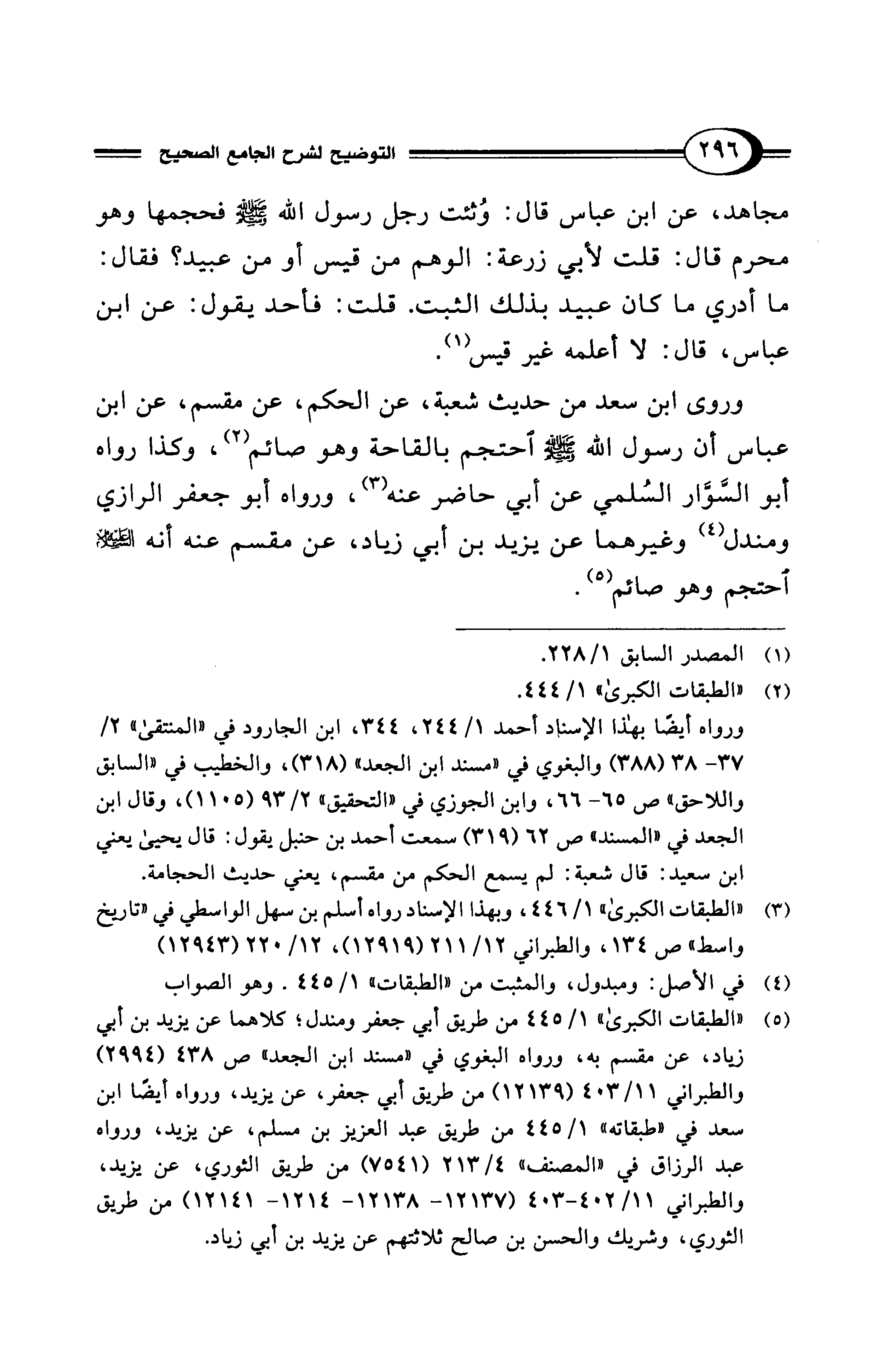 مجاهد، عن ابن عباس قال: وُثئت رجل رسول الله - صلى الله عليه وسلم - فحجمها وهو محرم قال: قلت لأبي زرعة: الوهم من قيس أو من عبيد؟ فقال: ما أدري ما كان عبيد بذلك الثبت. قلت: فأحد يقول: عن ابن عباس، قال: لا أعلمه غير قيس (¬1).