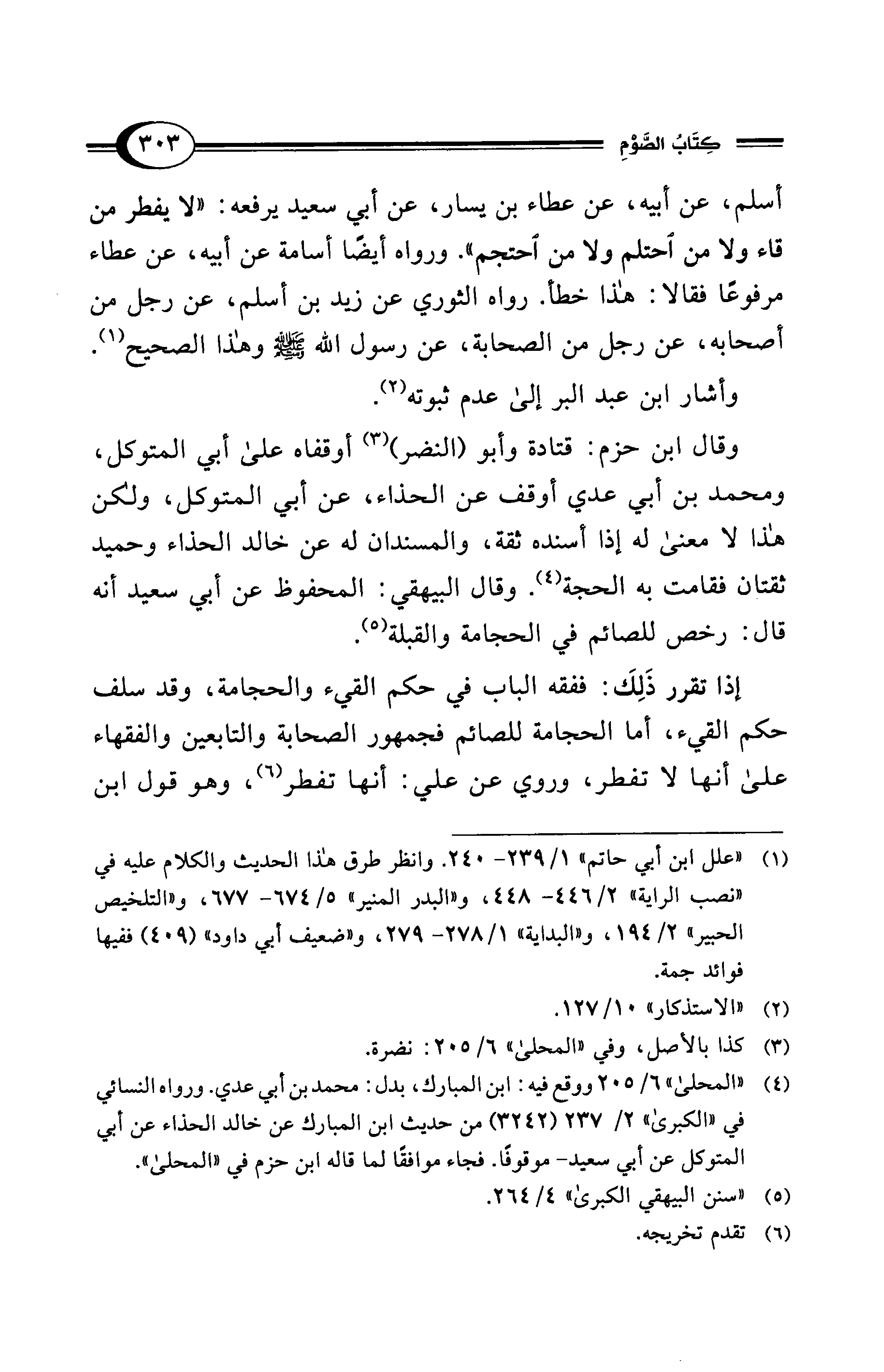 (¬4) "المحلى" 6/ 205 ووقع فيه: ابن المبارك، بدل: محمد بن أبي عدي. ورواه النسائي في "الكبرى" 2/ 237 (3242) من حديث ابن المبارك عن خالد الحذاء عن أبي المتوكل عن أبي سعيد- موقوفًا. فجاء موافقًا لما قاله ابن حزم في "المحلى".
