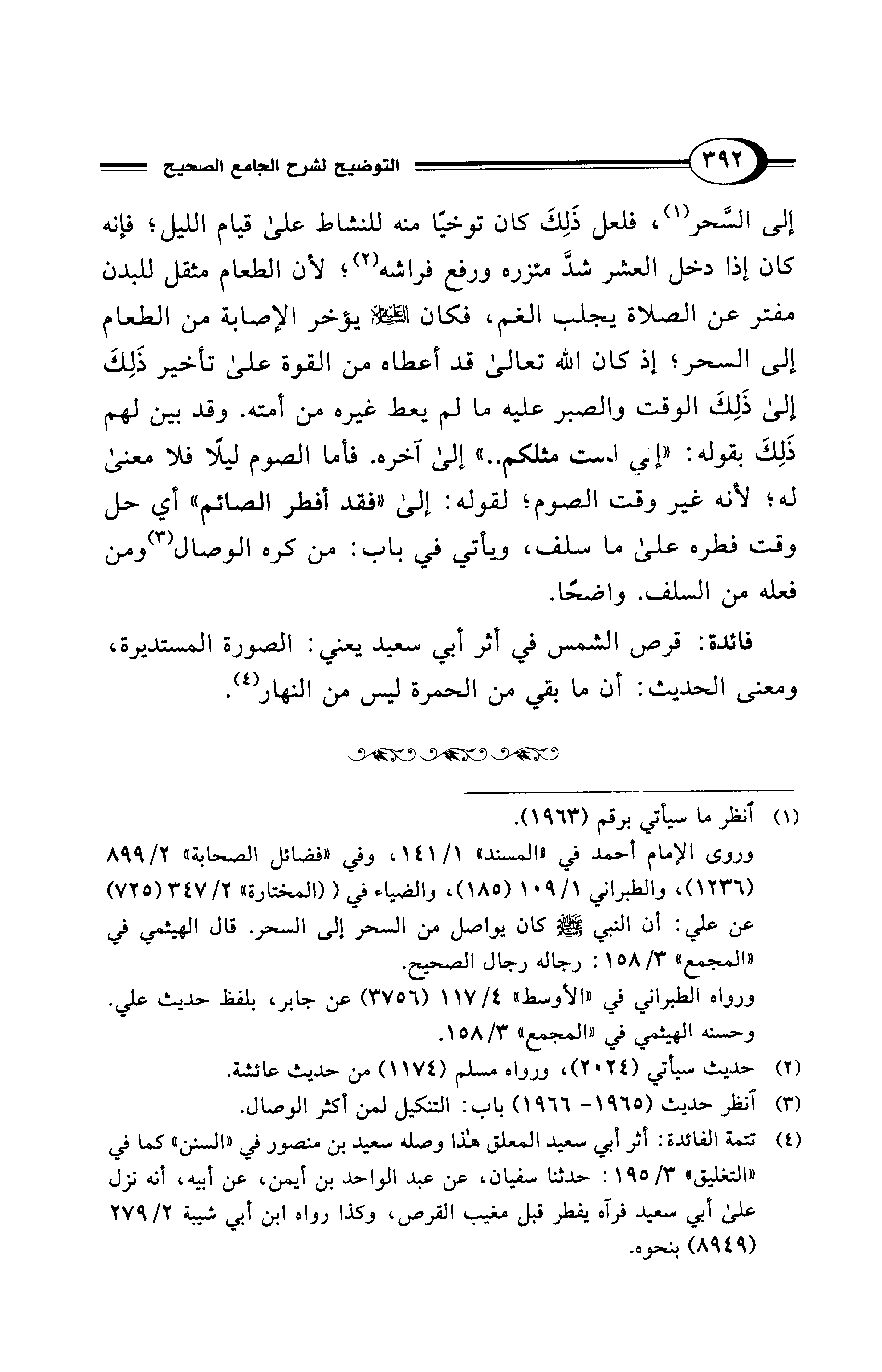 (¬4) تتمة الفائدة: أثر أبي سعيد المعلق هذا وصله سعيد بن منصور في "السنن" كما في "التغليق" 3/ 195: حدثنا سفيان، عن عبد الواحد بن أيمن، عن أبيه، أنه نزل على أبي سعيد فرآه يفطر قبل مغيب القرص، وكذا رواه ابن أبي شيبة 2/ 279 (8949) بنحوه.