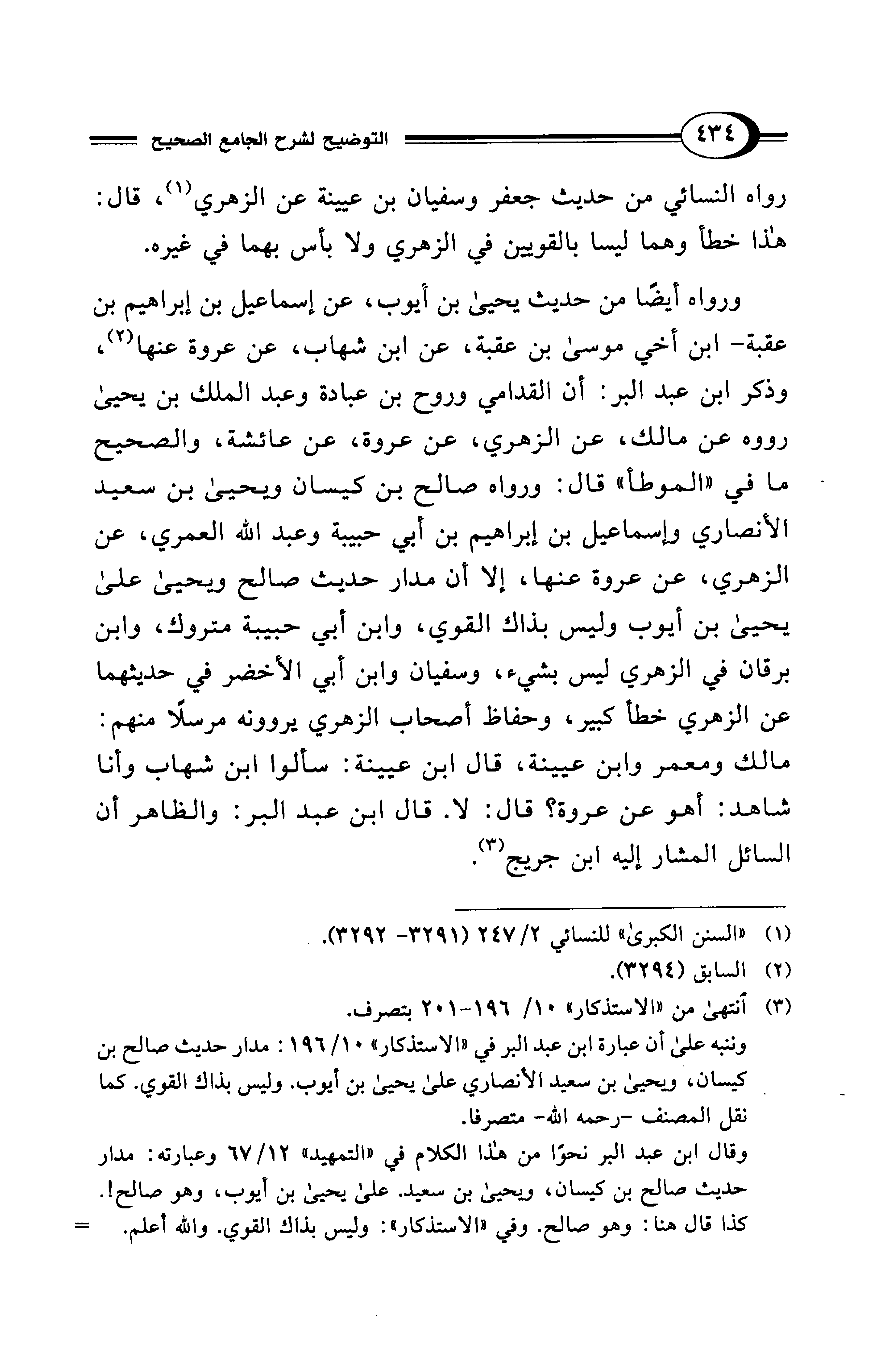 وقال ابن عبد البر نحوًا من هذا الكلام في "التمهيد" 12/ 67 وعبارته: مدار حديث صالح بن كيسان، ويحيى بن سعيد. على يحيى بن أيوب، وهو صالح!.