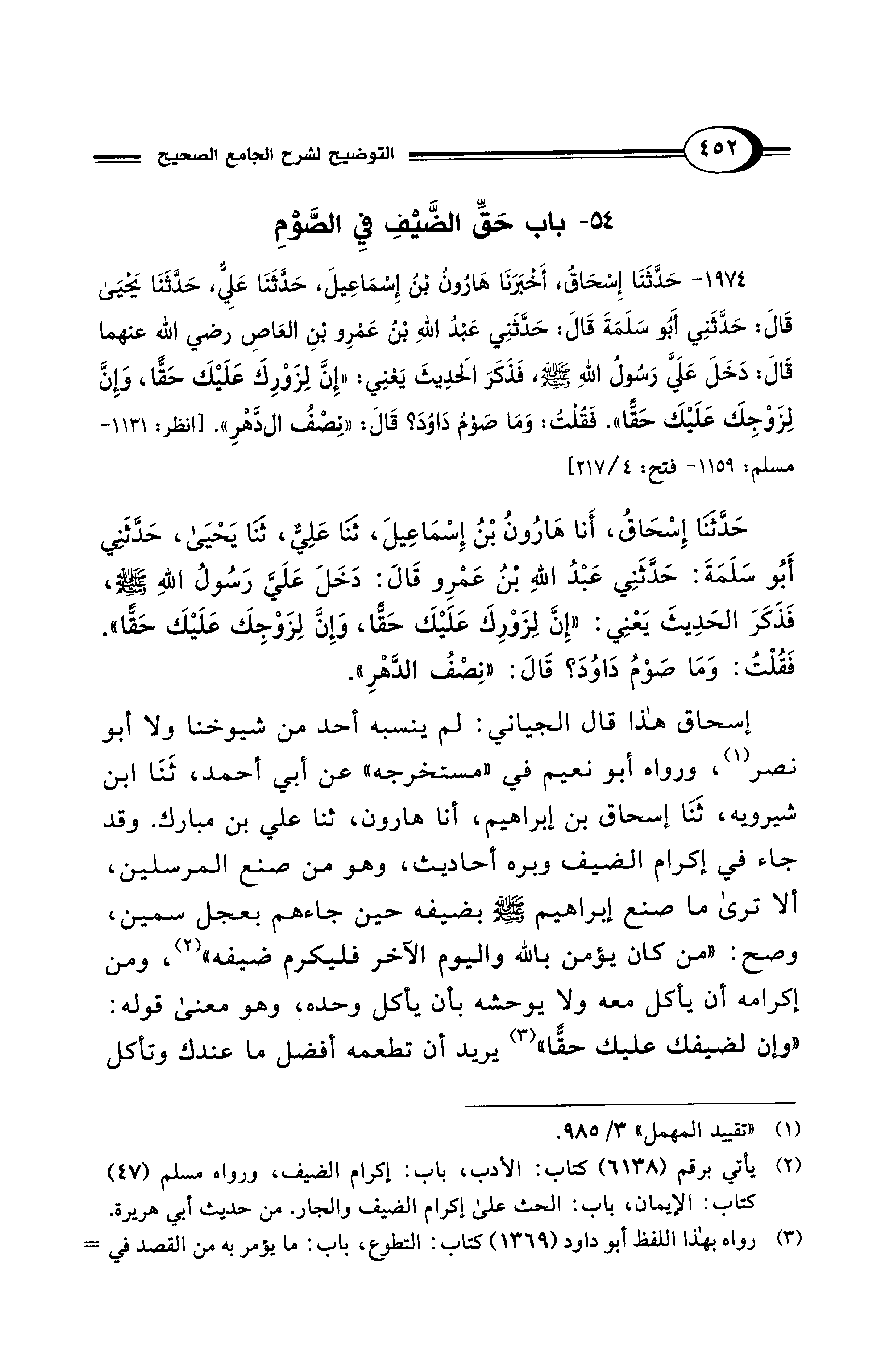 54 - باب حَقِّ الضَّيْفِ فِي الصَّوْمِ