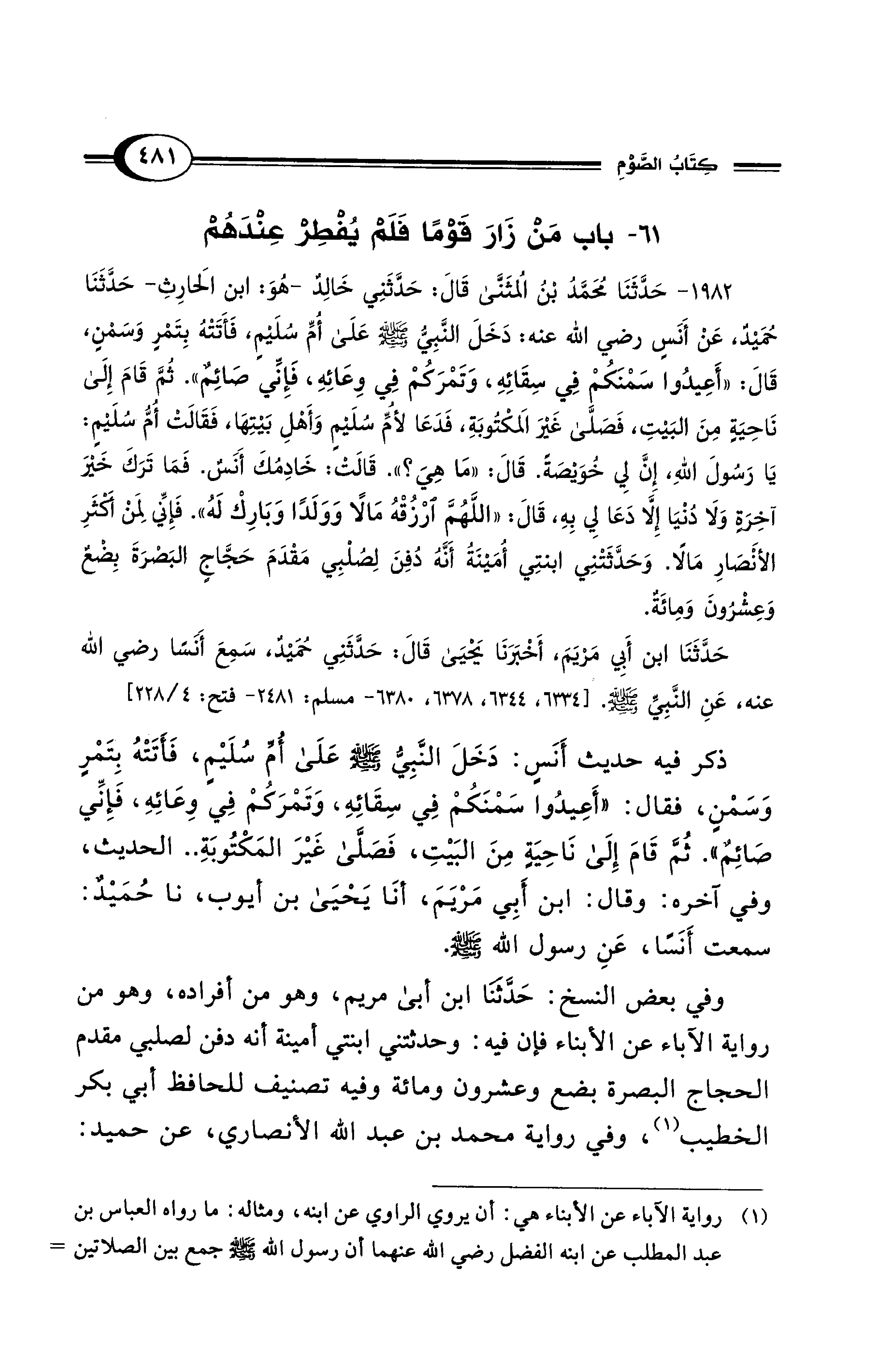 61 - باب مَنْ زَارَ قَوْمًا فَلَمْ يُفْطِرْ عِنْدَهُمْ