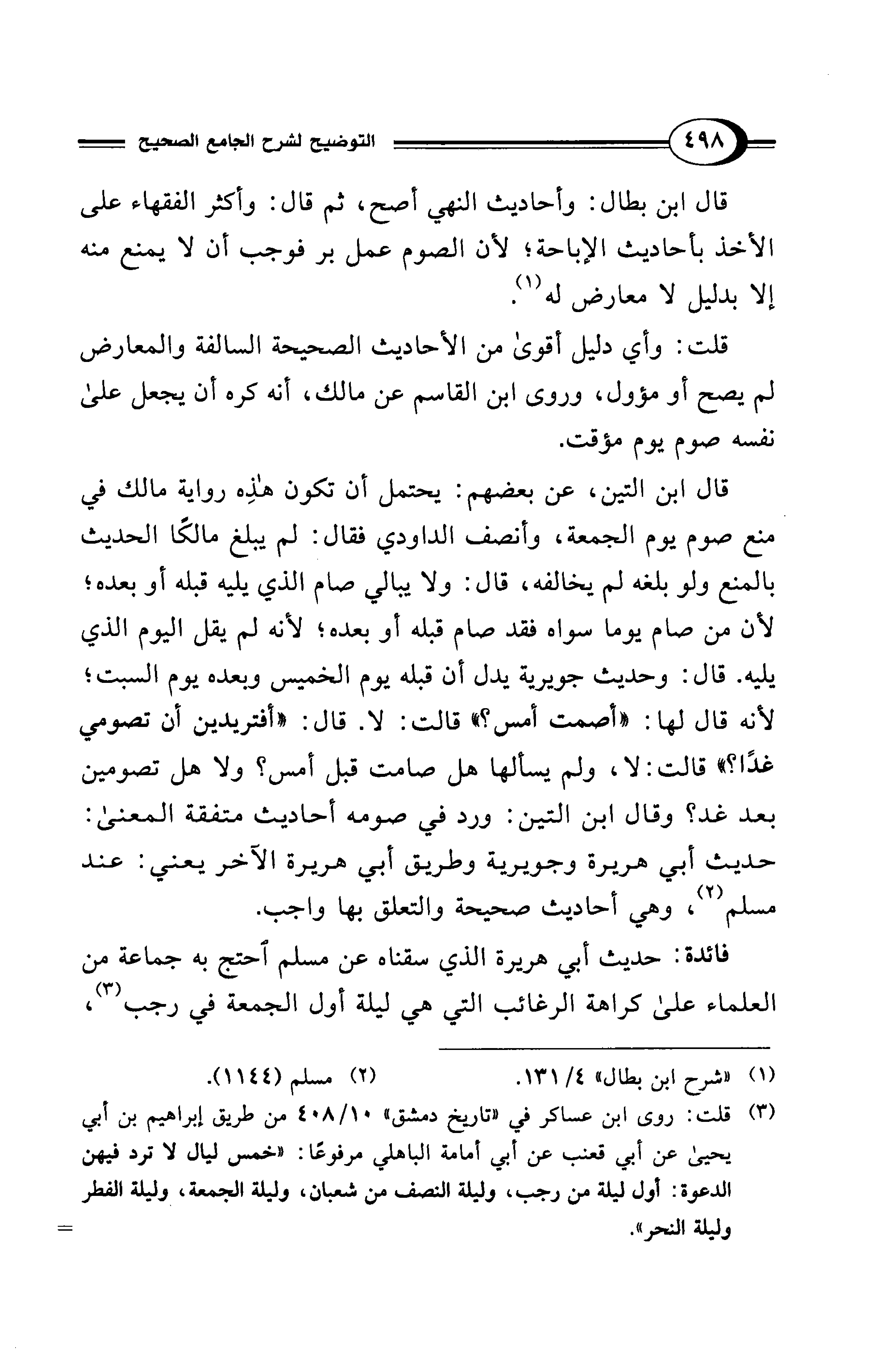 فائدة: حديث أبي هريرة الذي سقناه عن مسلم احتج به جماعة من العلماء على كراهة الرغائب التي هي ليلة أول الجمعة في رجب (¬3)،