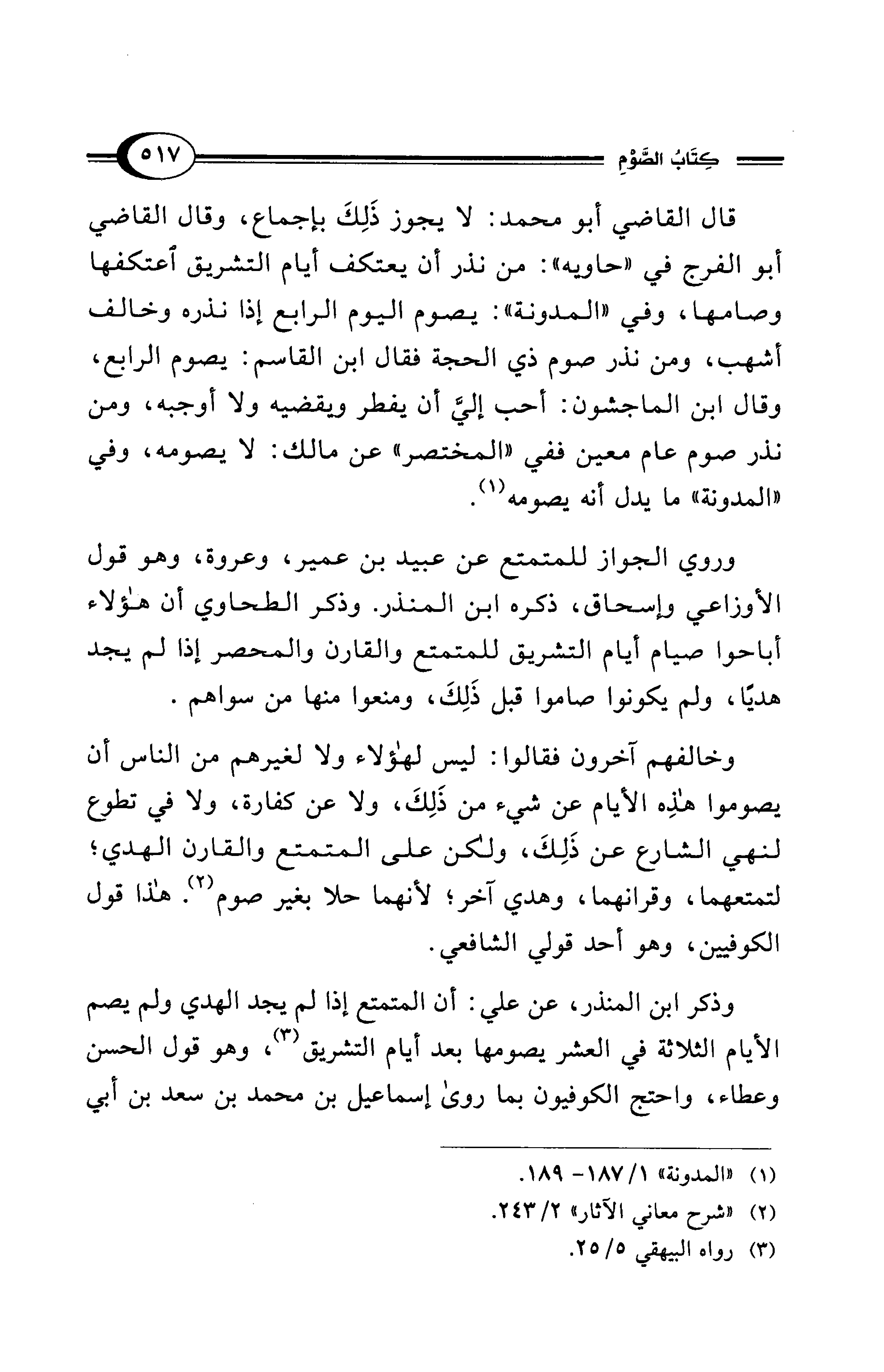 وخالفهم آخرون فقالوا: ليس لهؤلاء ولا لغيرهم من الناس أن يصوموا هذِه الأيام عن شيء من ذَلِكَ، ولا عن كفارة، ولا في تطوع لنهي الشارع عن ذَلِكَ، ولكن على المتمتع والقارن الهدي؛ لتمتعهما، وقرانهما، وهدي آخر؛ لأنهما حلا بغير صوم (¬2). هذا قول الكوفيين، وهو أحد قولي الشافعي.