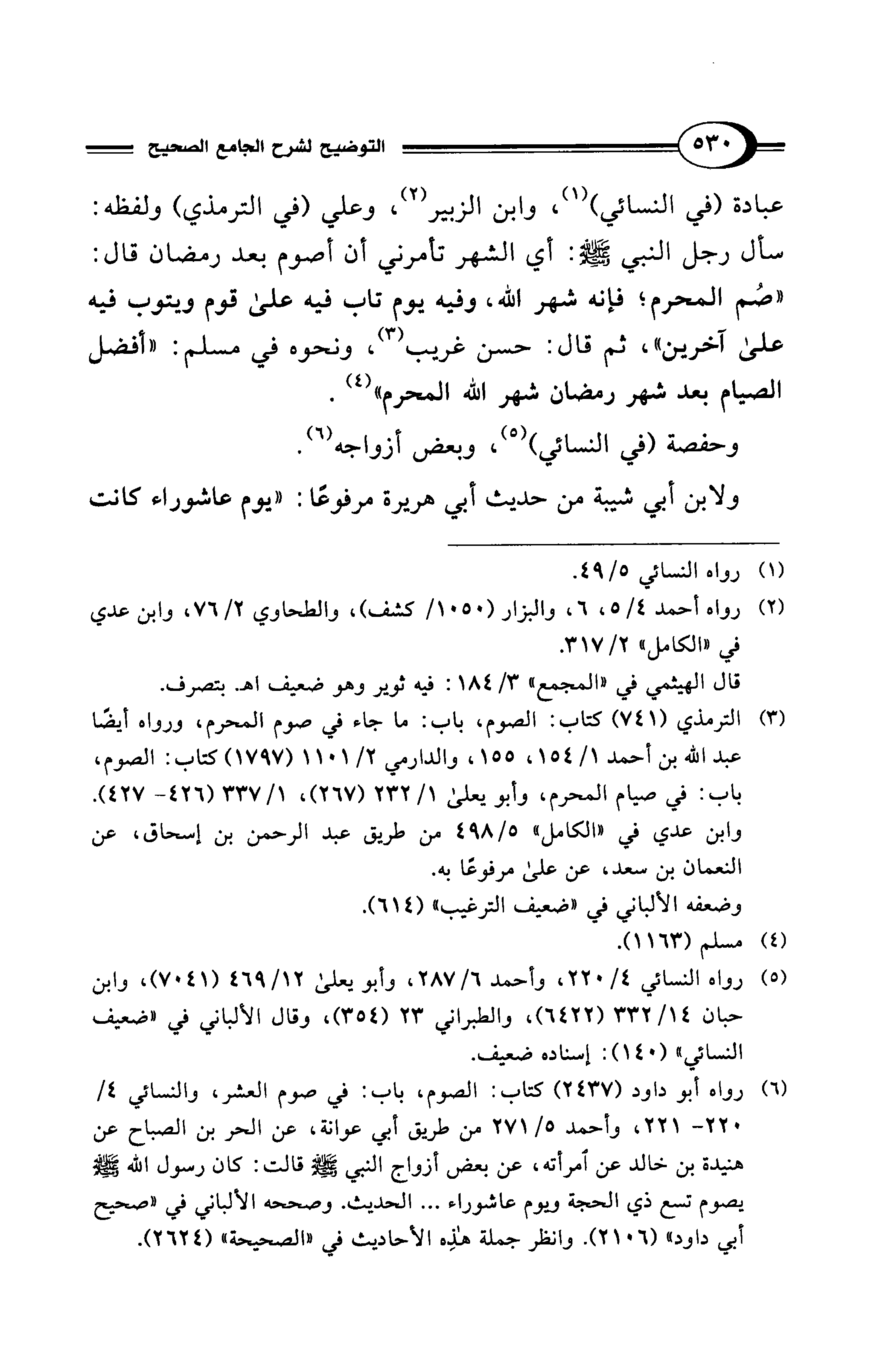 (¬3) الترمذي (741) كتاب: الصوم، باب: ما جاء في صوم المحرم، ورواه أيضًا عبد الله بن أحمد 1/ 154، 155، والدارمي 2/ 1101 (1797) كتاب: الصوم، باب: في صيام المحرم، وأبو يعلى 1/ 232 (267)، 1/ 337 (426 - 427).