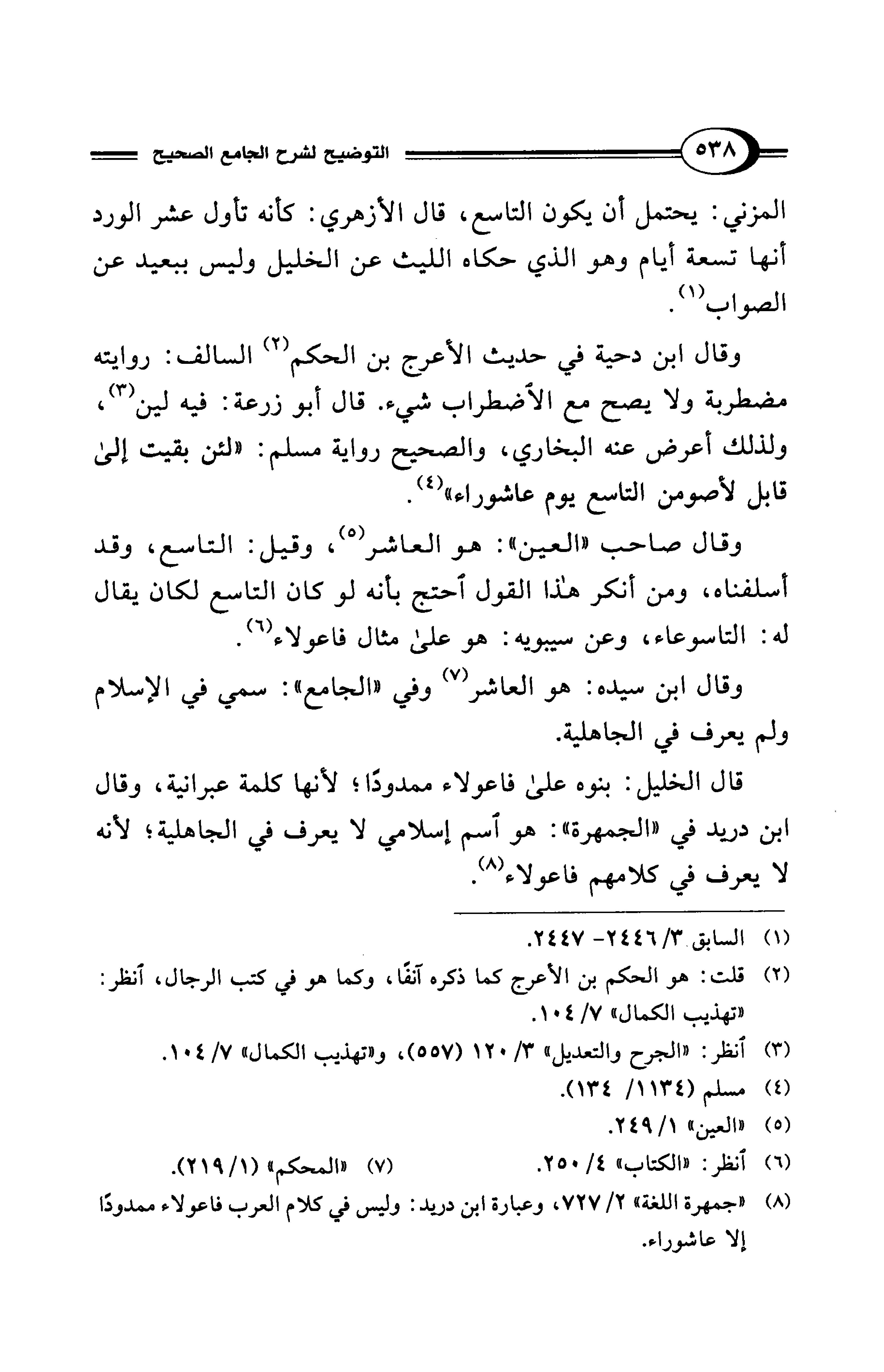 (¬8) "جمهرة اللغة" 2/ 727، وعبارة ابن دريد: وليس في كلام العرب فاعولاء ممدودًا إلا عاشوراء.