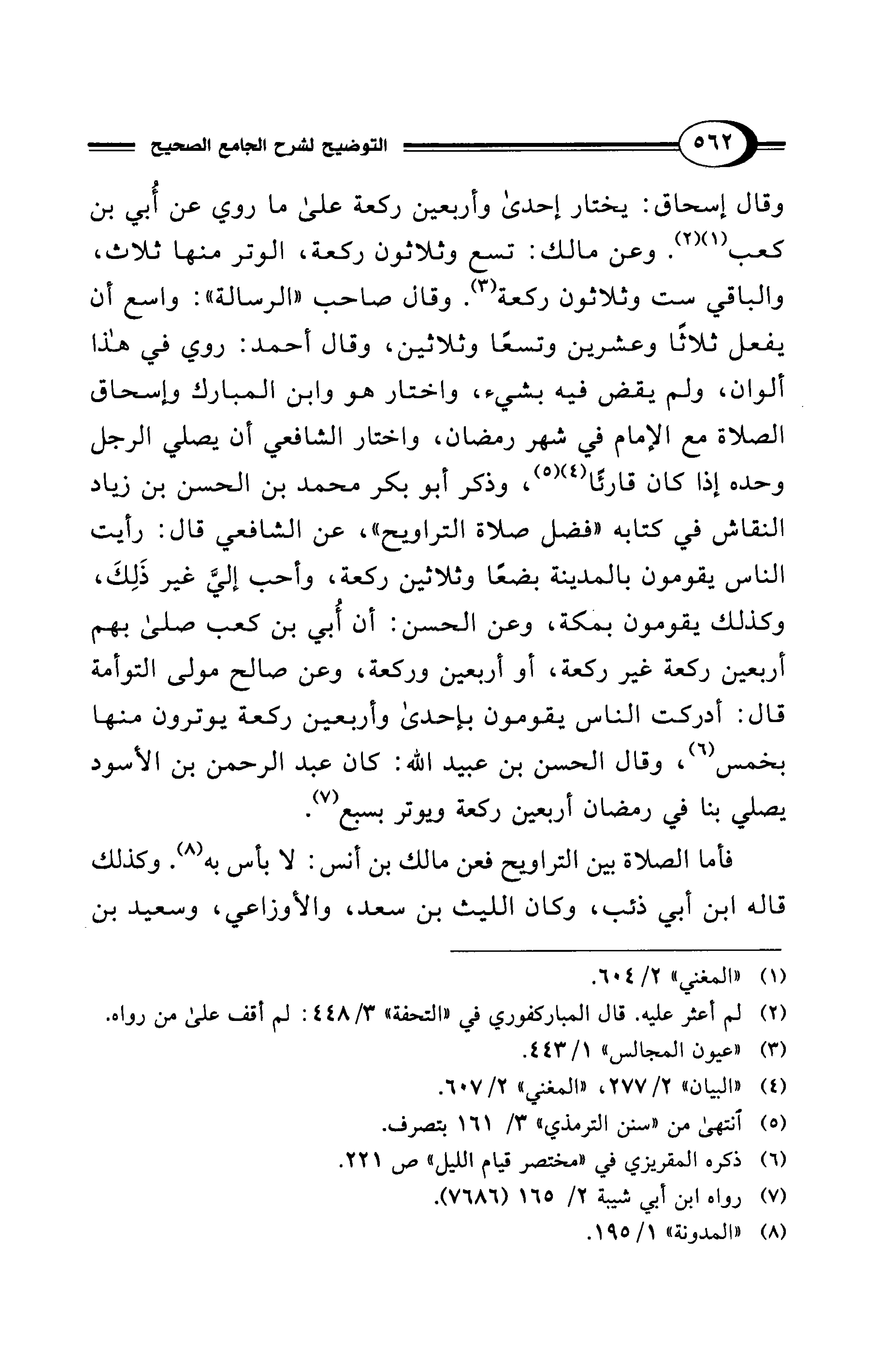 فأما الصلاة بين التراويح فعن مالك بن أنس: لا بأس به (¬8). وكذلك قاله ابن أبي ذئب، وكان الليث بن سعد، والأوزاعي، وسعيد بن