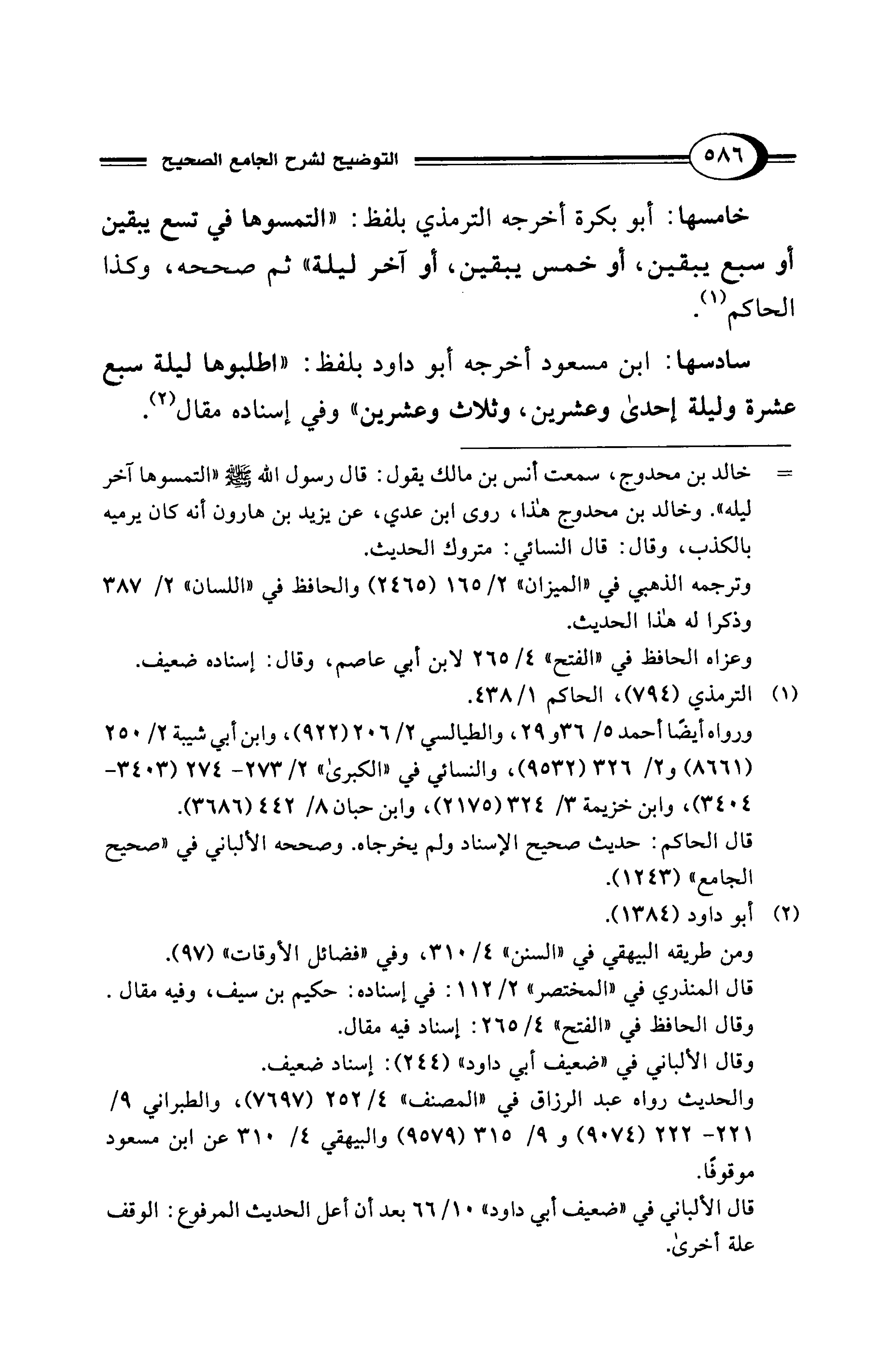 خامسها: أبو بكرة أخرجه الترمذي بلفظ: "التمسوها في تسع يبقين أو سبع يبقين، أو خمس يبقين، أو آخر ليلة" ثم صححه، وكذا الحاكم (¬1).