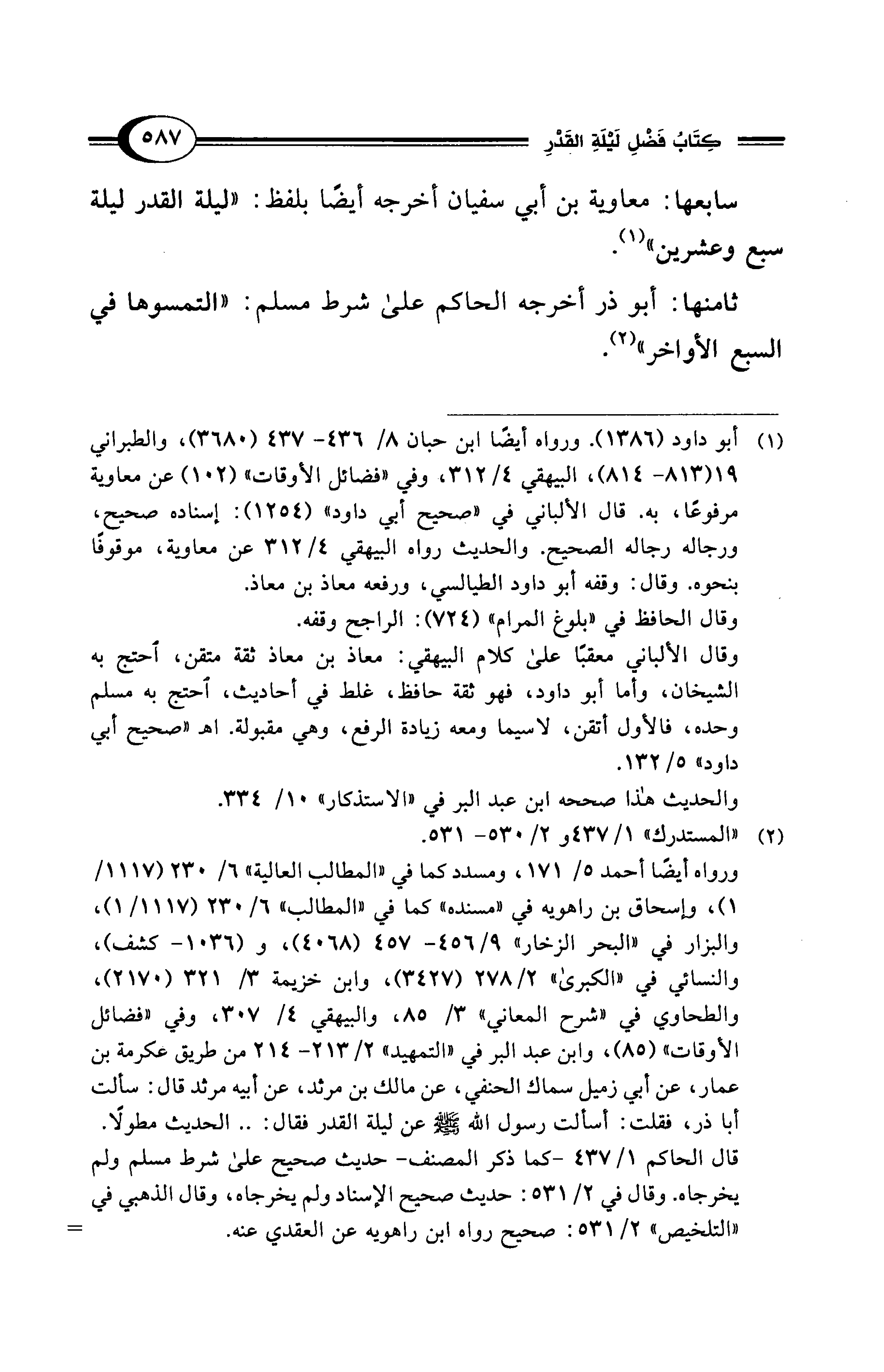 سابعها: معاوية بن أبي سفيان أخرجه أيضًا بلفظ: "ليلة القدر ليلة سبع وعشرين" (¬1).