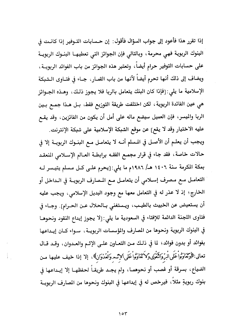إذا تقرر هذا فأعود إلى جواب السؤال فأقول: إن حسابات التوفير إذا كانت في البنوك الربوية فهي محرمة، وبالتالي فإن الجوائز التي تعطيها البنوك الربوية على حسابات التوفير حرام أيضاً، وتعتبر هذه الجوائز من باب الفوائد الربوية، ويضاف إلى ذلك أنها تحرم أيضاً لأنها من باب القمار، جاء في فتاوى الشبكة الإسلامية ما يلي: [فإذا كان البنك يتعامل بالربا فلا يجوز ذلك، وهذه الجوائز هي عين الفائدة الربوية، لكن اختلفت طريقة التوزيع فقط، بل هذا جمع بين الربا والميسر، فإن العميل سيضع ماله على أمل أن يكون من الفائزين، وقد يقع عليه الاختيار وقد لا يقع.] عن موقع الشبكة الإسلامية على شبكة الإنترنت. ويجب أن يعلم أن الأصل في المسلم أنه لا يتعامل مع البنوك الربوية إلا في حالات خاصة، فقد جاء في قرار مجمع الفقه برابطة العالم الإسلامي المنعقد بمكة المكرمة سنة 1406 هـ/ 1986م ما يلي: [يحرم على كل مسلم يتيسر له التعامل مع مصرف إسلامي أن يتعامل مع المصارف الربوية في الداخل أو الخارج؛ إذ لا عذر له في التعامل معها مع وجود البديل الإسلامي، ويجب عليه أن يستعيض عن الخبيث بالطيب، ويستغني بالحلال عن الحرام]. وجاء في فتاوى اللجنة الدائمة للإفتاء في السعودية ما يلي: [لا يجوز إيداع النقود ونحوها في البنوك الربوية ونحوها من المصارف والمؤسسات الربوية، سواء كان إيداعها بفوائد أو بدون فوائد؛ لما في ذلك من التعاون على الإثم والعدوان، وقد قال تعالى: {وَتَعَاوَنُواْ عَلَى الْبرِّ وَالتَّقْوَى وَلاَ تَعَاوَنُواْ عَلَى الإِثْمِ وَالْعُدْوَانِ}، إلا إذا خيف عليها من الضياع، بسرقة أو غصب أو نحوهما، ولم يجد طريقاً لحفظها إلا إيداعها في بنوك ربويةٍ مثلاً، فيرخص له في إيداعها في البنوك ونحوها من