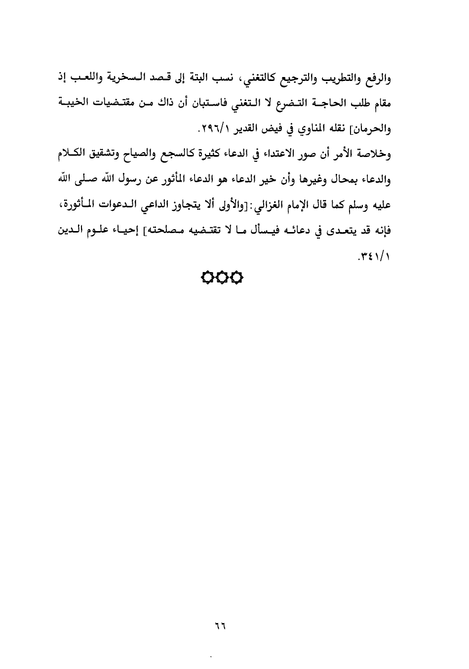والرفع والتطريب والترجيع كالتغني، نسب البتة إلى قصد السخرية واللعب إذ مقام طلب الحاجة التضرع لا التغني فاستبان أن ذاك من مقتضيات الخيبة والحرمان] نقله المناوي في فيض القدير 1/ 296.