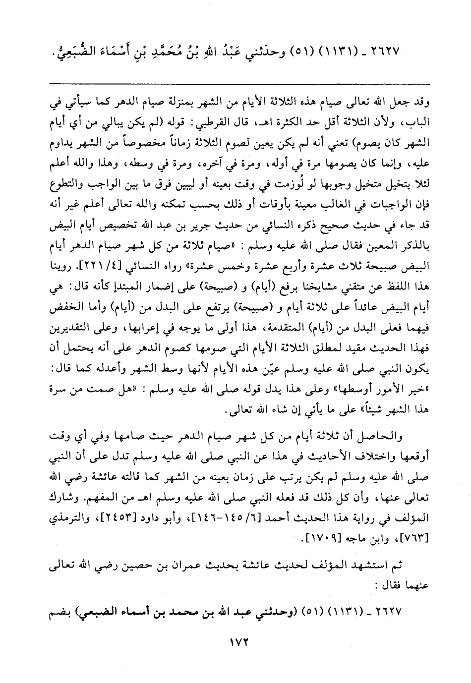 ٢٦٢٧ - (١١٣١) (٥١) وحدّثني عَبْدُ اللهِ بْنُ مُحَمَّدِ بْنِ أسْمَاءَ الضُّبَعِيُّ