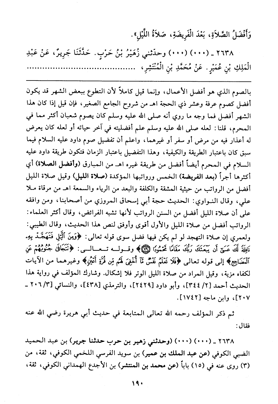 وَأفْضَلُ الصلاةِ، بَعْدَ الْفَرِيضَةِ، صَلاةُ الليلِ".