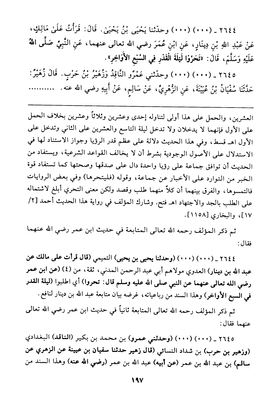 ٢٦٤٤ - (٠٠) (٠٠) وحدّثنا يَحْيَى بْنُ يَحْيَى. قَال: قَرَأتُ عَلَى مَالِكٍ، عَنْ عَبْدِ اللهِ بْنِ دِينَارٍ، عَنِ ابْنِ عمَرَ رضي الله تعالى عنهما، عَنِ النَّبِي صَلَّى الله عَلَيهِ وَسلَّمَ، قَال: "تَحَرَّوا لَيلَةَ الْقَدْرِ فِي السبْعِ الأَوَاخِرِ".