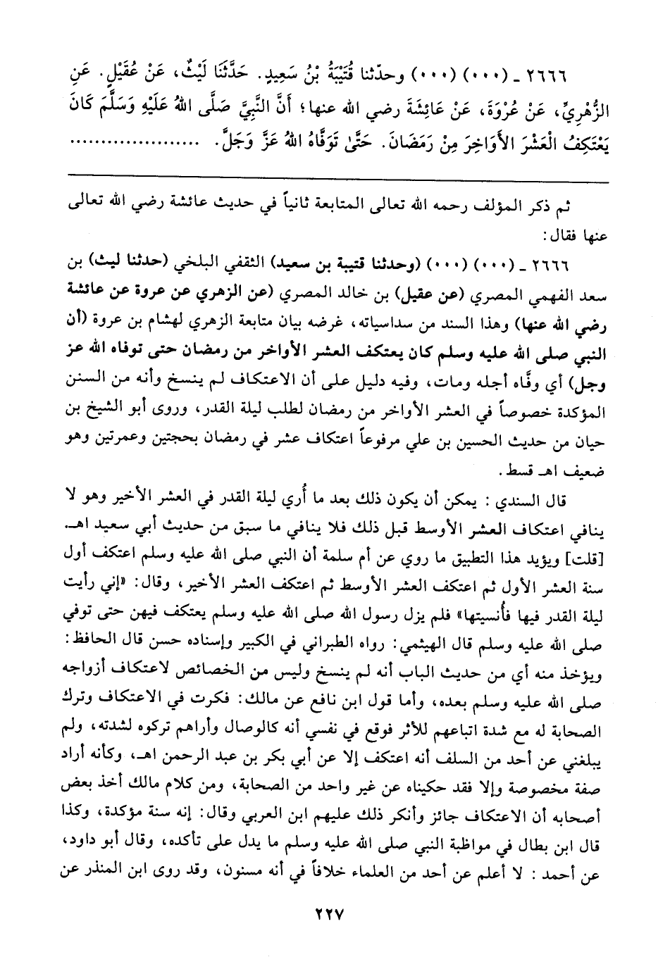 ٢٦٦٦ - (٠٠) (٠٠) وحدثنا قُتَيبَةُ بْنُ سَعِيدٍ. حَدَّثَنَا لَيثٌ، عَنْ عُقَيل. عَنِ الزُّهْرِي، عَنْ عُرْوَةَ، عَنْ عَائِشَةَ رضي الله عنها؛ أَنَّ النَّبِي صَلَّى اللهُ عَلَيهِ وَسَلمَ كَانَ يَعْتَكِفُ الْعَشْرَ الأَوَاخِرَ مِنْ رَمَضَانَ. حَتى تَوَفاهُ اللهُ عَز وَجَل