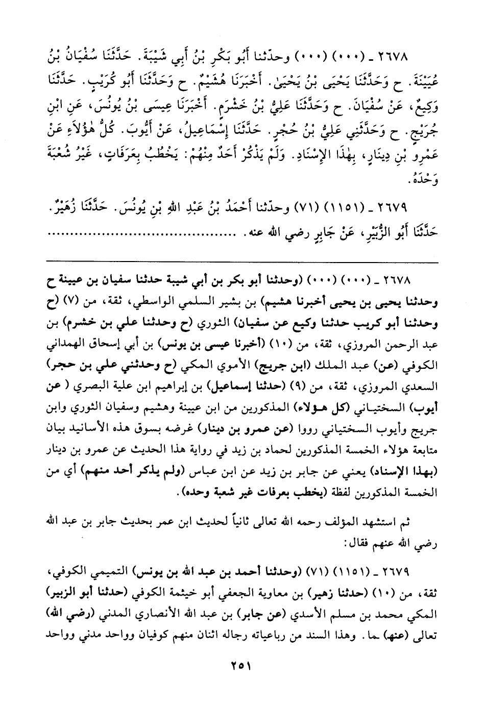 ٢٦٧٩ - (١١٥١) (٧١) (وحدثنا أحمد بن عبد الله بن يونس) التميمي الكوفي، ثقة، من (١٠) (حدثنا زهير) بن معاوية الجعفي أبو خيثمة الكوفي (حدثنا أبو الزبير) المكي محمد بن مسلم الأسدي (عن جابر) بن عبد الله الأنصاري المدني (رضي الله) تعالى (عنهـ) ـما. وهذا السند من رباعياته رجاله اثنان منهم كوفيان وواحد مدني وواحد