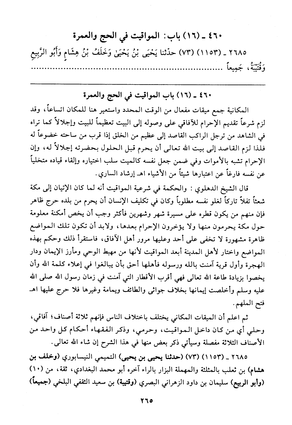 ٢٦٨٥ - (١١٥٣) (٧٣) (حدثنا يحيى بن يحيى) التميمي النيسابوري (وخلف بن هشام) بن ثعلب بالمثلثة والمهملة البزار بالراء آخره أبو محمد البغدادي، ثقة، من (١٠) (وأبو الربيع) سليمان بن داود الزهراني البصري (وقتيبة) بن سعيد الثقفي البلخي (جميعًا)