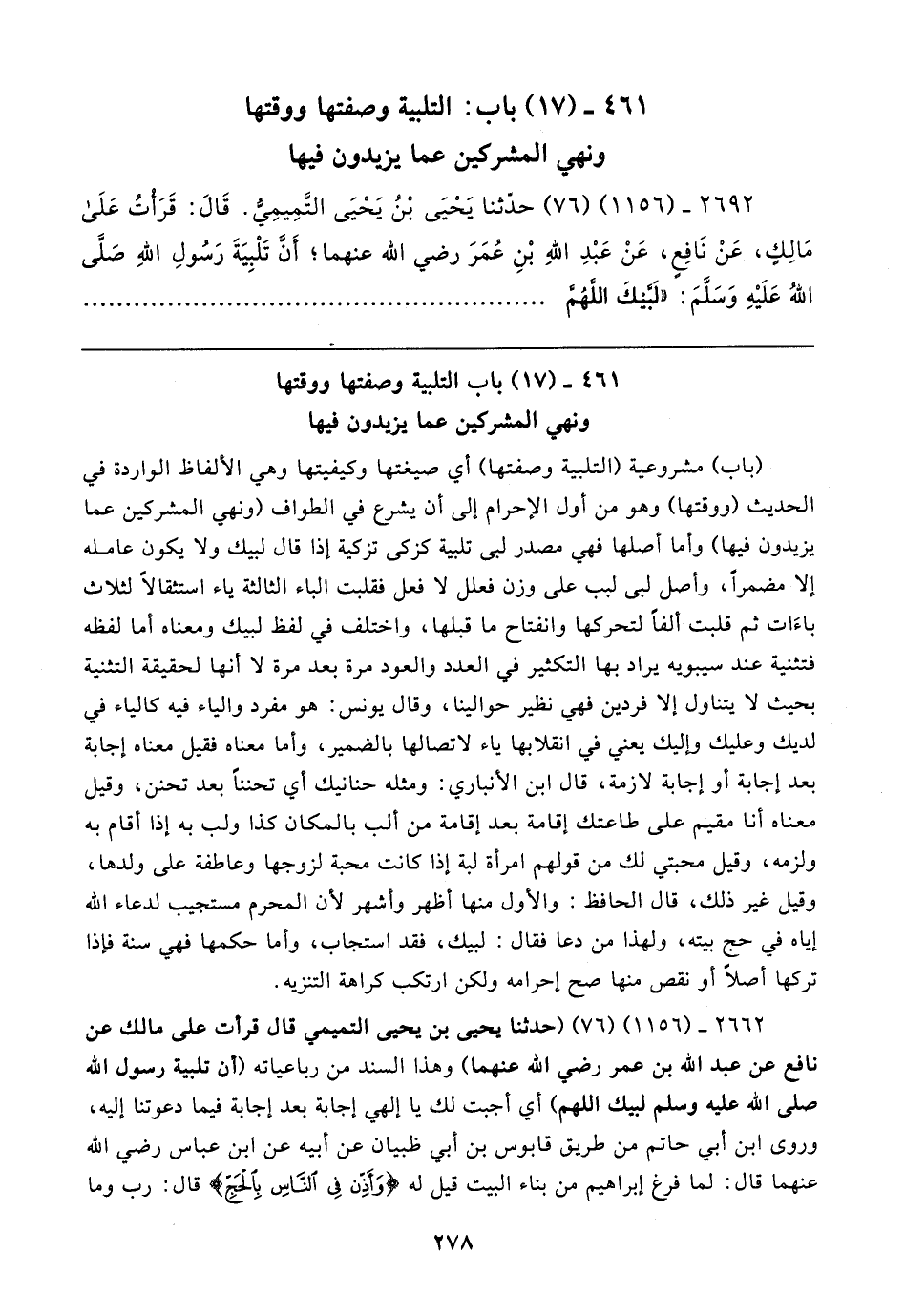 ٤٦١ - (١٧) باب التلبية وصفتها ووقتها ونهي المشركين عما يزيدون فيها