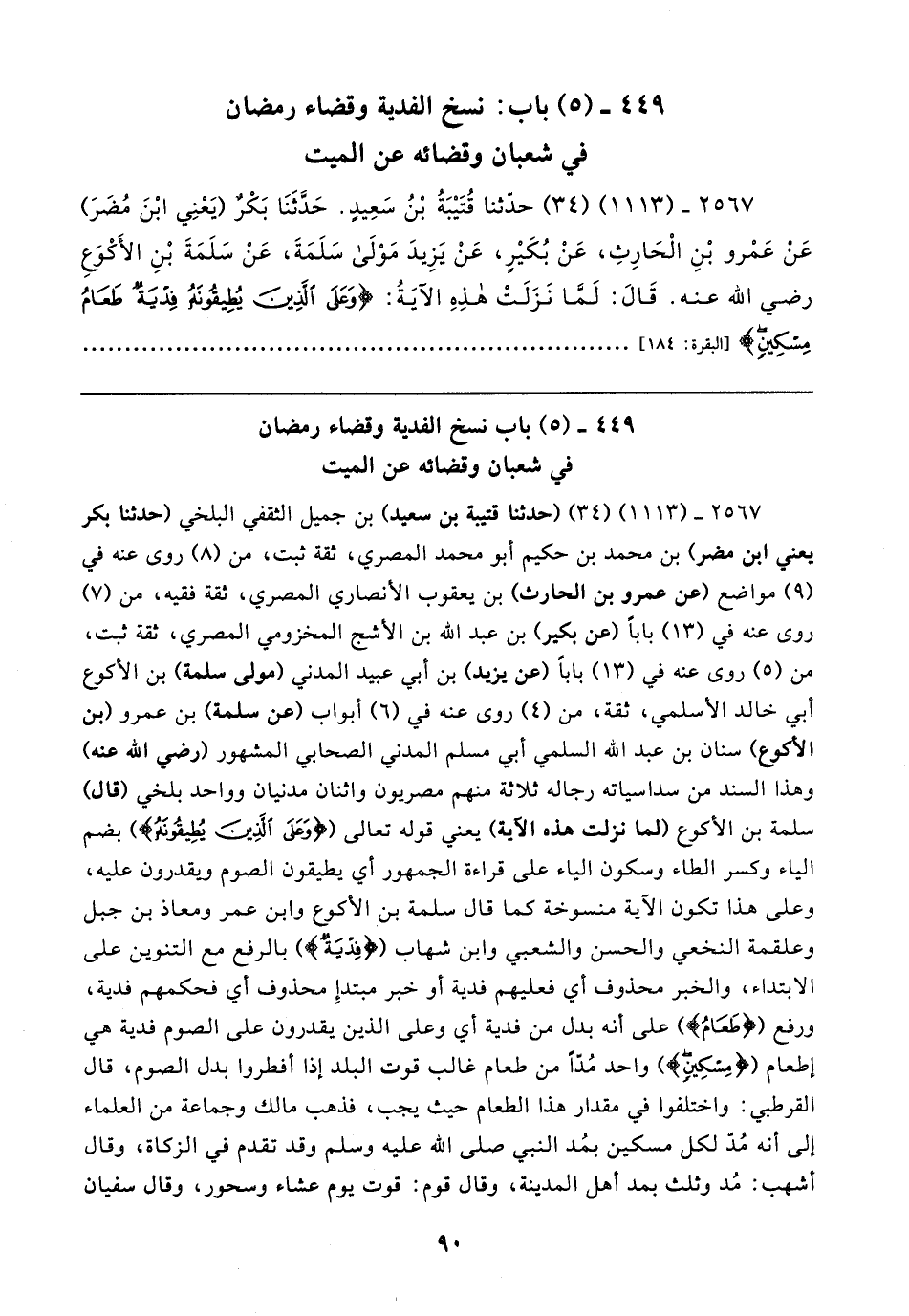 ٤٤٩ - (٥) باب نسخ الفدية وقضاء رمضان في شعبان وقضائه عن الميت