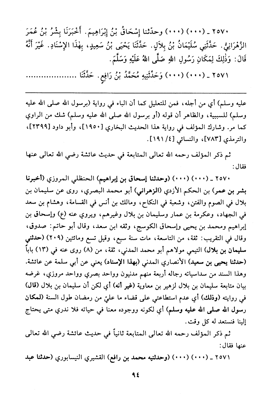 ٢٥٧٠ - (٠٠) (٠٠) وحدّثنا إِسْحَاقُ بْنُ إِبْرَاهِيمَ. أَخْبَرَنَا بِشْرُ بْنُ عُمَرَ الزهْرَانِيُّ. حَدَّثَنِي سُلَيمَانُ بْنُ بِلالٍ. حَدَّثَنَا يَحْيَى بْنُ سَعِيدٍ، بِهذَا الإِسْنَادِ. غَيرَ أَنَّهُ قَال: وَذلِكَ لِمَكَانِ رَسُولِ اللهِ صَلَّى اللهُ عَلَيهِ وَسَلَّمَ.