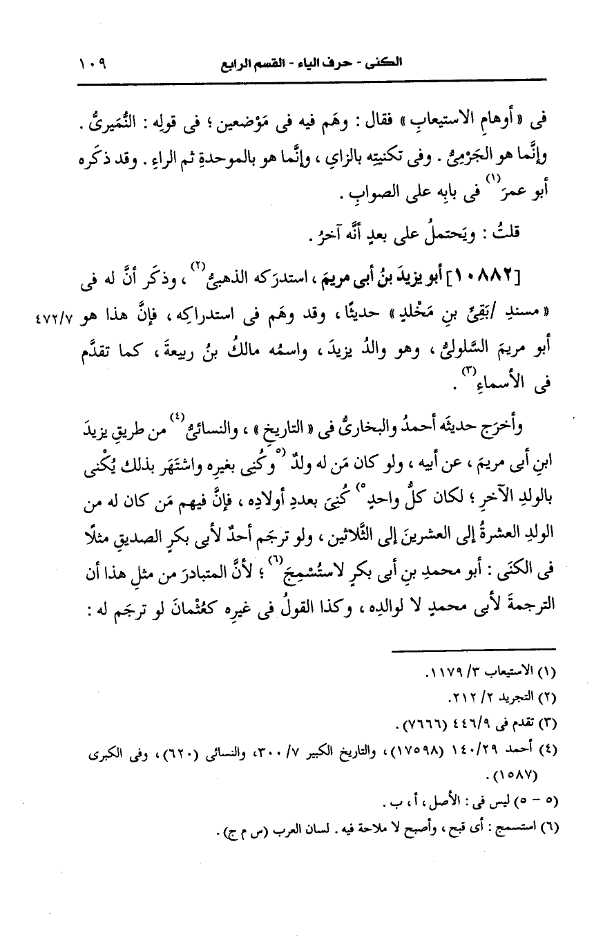 ولو كان من له ولد وكنى بغيره واشتهر بذلك يكنى بالولد الآخر لكان كل أحد كنى بعدد أولاده فإن فيهم من كان له من الولد العشرة إلى العشرين إلى الثلاثين ولو ترجم أحد لأبي بكر الصديق مثلا في الكنى أَبو محمد بن أبي بكر لاستسمج لأن المتبادر من مثل هذا أن الترجمة لأبي محمد لا لوالده وكذا القول في غيره كعثمان لو ترجم له أَبو عَمرو بن عثمان لكان في غاية الركاكة وهذا بين لا خفاء به والله المستعان.