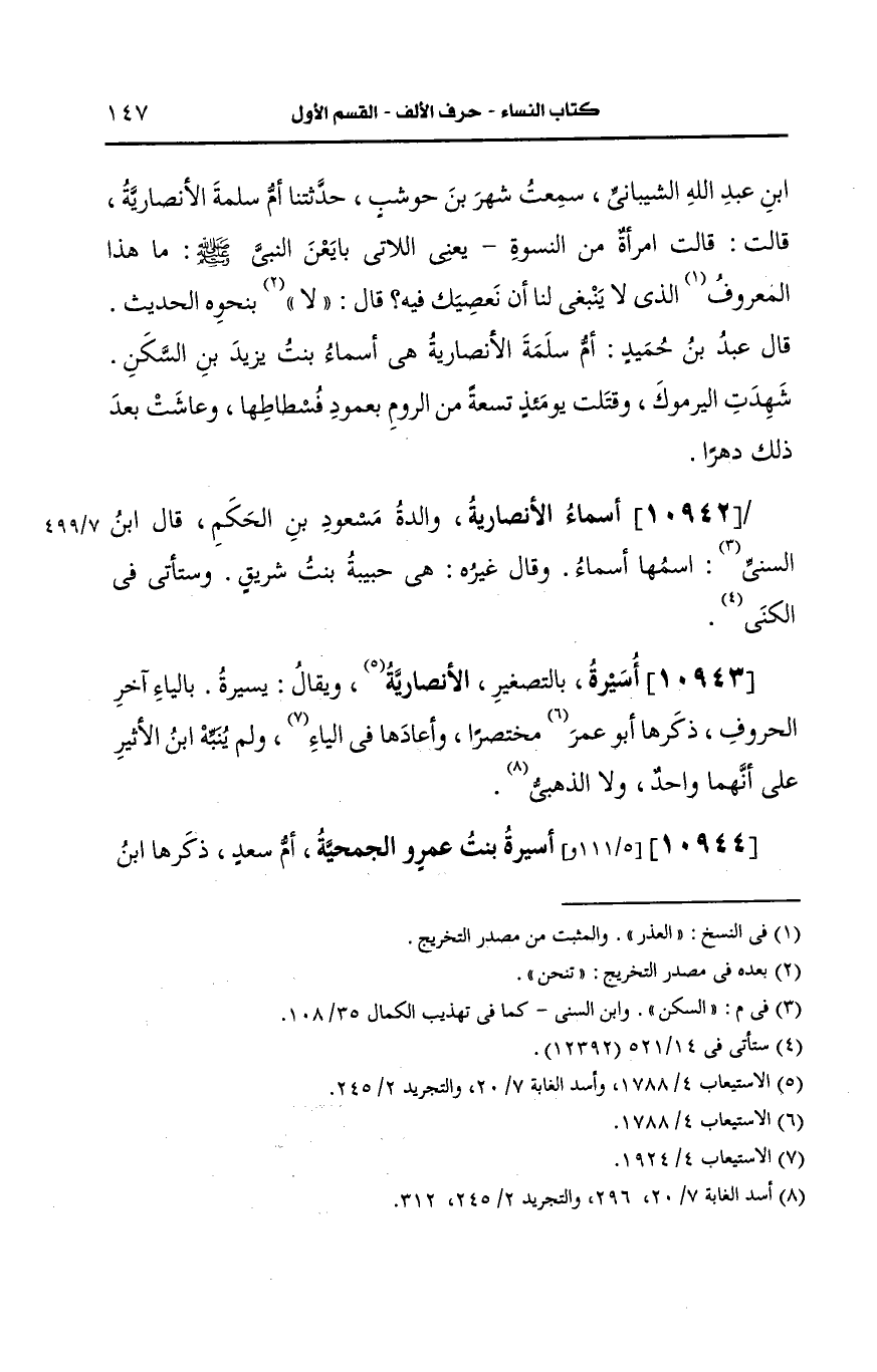 10943- أسيرة بالتصغير، الأَنصارِيّة، ويُقال: يسيرة بالياء آخر الحروف.