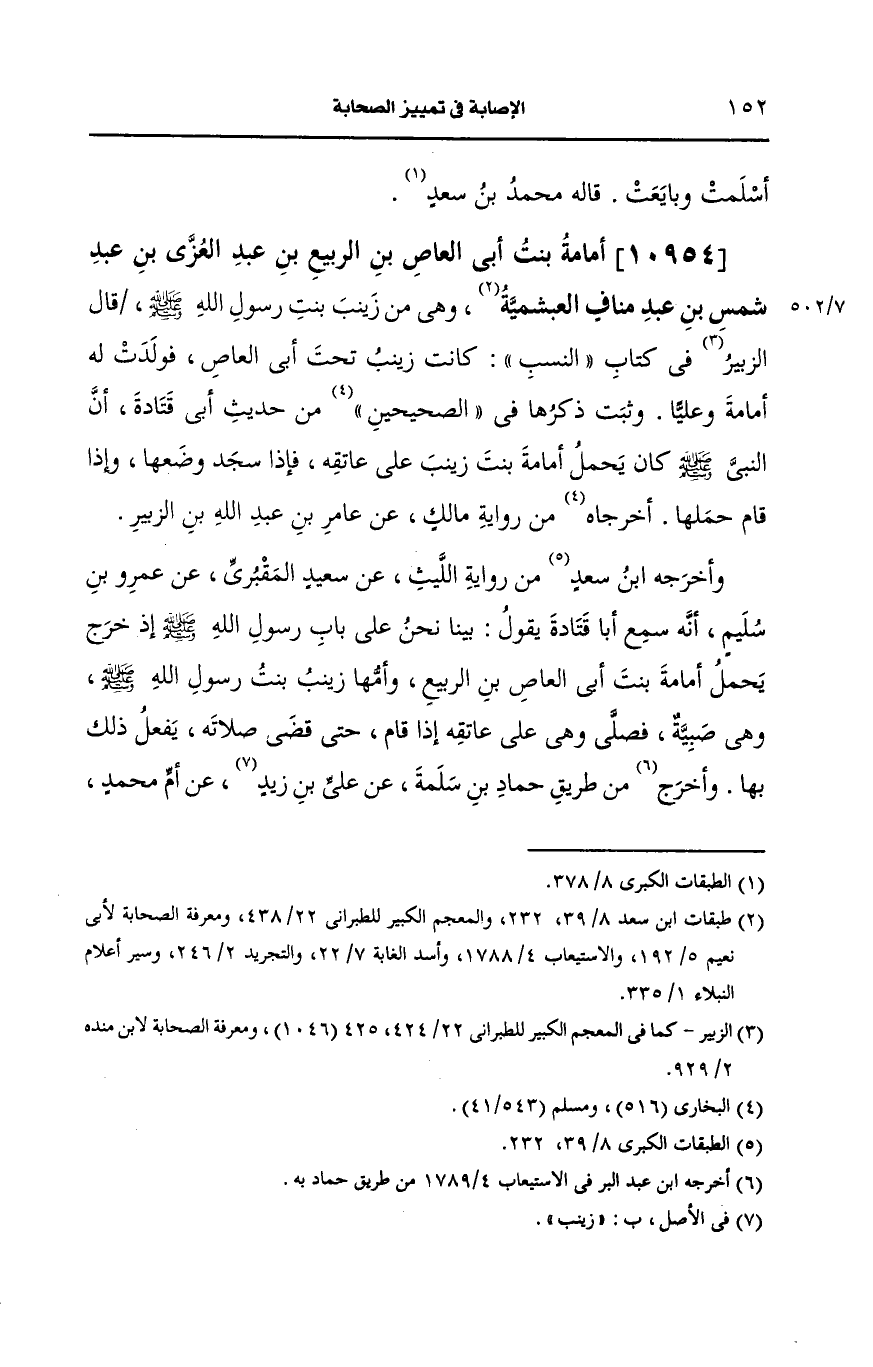 10954- أمامة بنت أبي العاص بن الربيع بن عبد العزى بن عبد شمس بن عبد مناف العبشمية وهي من زينب بنت رسول الله صَلى الله عَلَيه وسَلم.