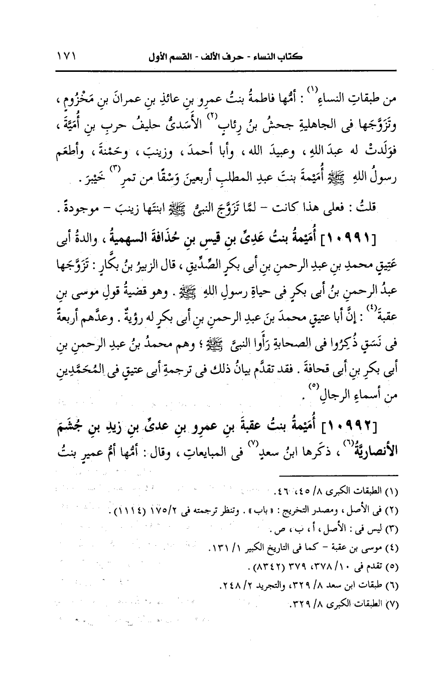 10991- أميمة بنت عدي بن قيس بن حذافة السهمي.