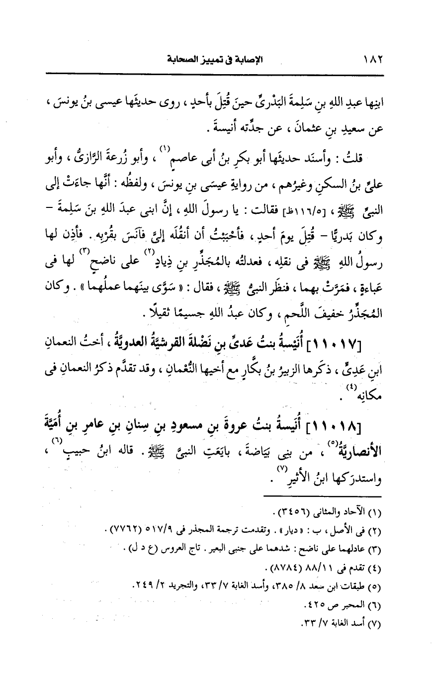 11018- أنيسة بنت عُروَة بن مسعود بن سنان بن عامر بن أُمَيَّة، الأَنصارِيّة.