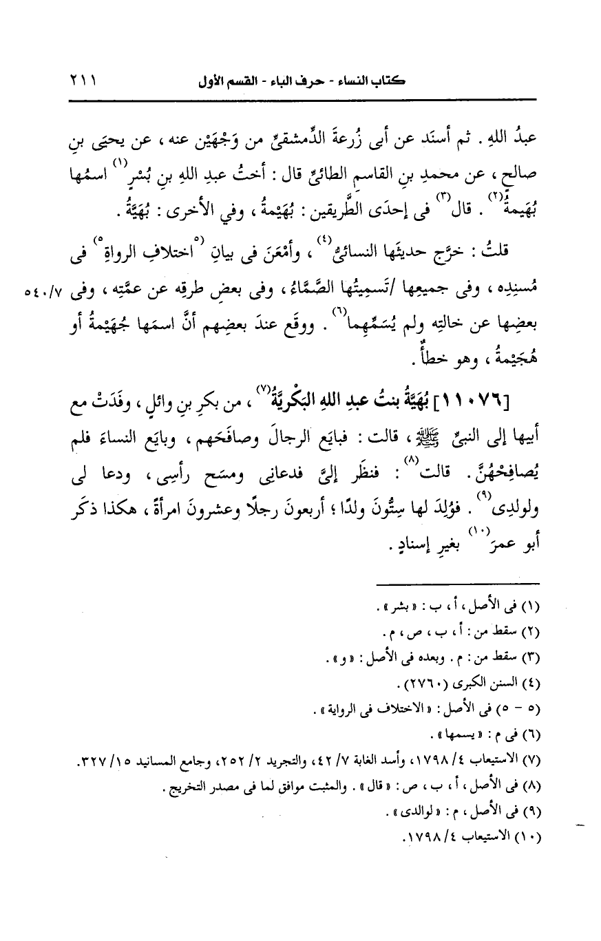 11076- بهية بنت عَبد الله البكرية من بكر بن وائل.