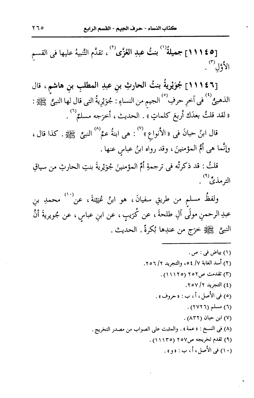 قال الذهبي في آخر حرف الجيم من النساء جويرية التي قال لها النَّبيّ صَلى الله عَلَيه وسَلم لقد قلت: بعدك أربع كلمات الحديث أَخرجه مسلم.
